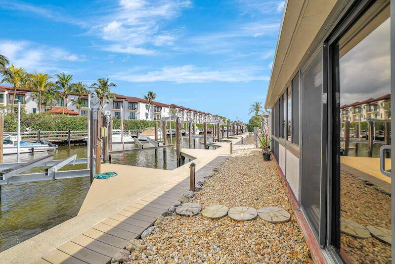 A BOATER'S HAVEN!! Includes an assigned 26 Foot Boat Slip with a 10,000 lb. Lift - no bridges to Gulf and just 4 steps off Lanai to your boat This completely renovated 1.5 bdrm./2 bath condo is a truly must see for the most discerning buyer. Some upgrades and renovations include, porcelain tile flooring throughout, impact resistant windows and door, Quartz countertops with full size backsplash, superior full wall cabinets with pull-outs and lazy susan, quartz kitchen island with cabinets and overhead fan, newer upgraded stainless steel appliances, plantation shutters on all windows, expansive master bedroom offers 20 feet of closet space. Both bathrooms have been exquisitely refinished, and the list goes on and on. A complete list of improvements and upgrades can be provided. Location is everything and you are a mile from downtown, beaches and all that Naples has to offer.