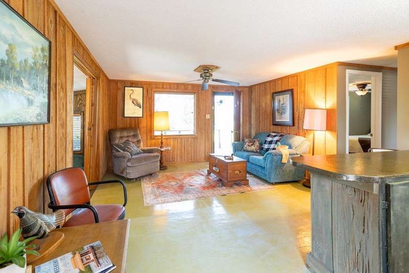 Experience the timeless charm of this rustic cypress cabin nestled along the serene banks of Horseshoe Lake, offering breathtaking lake views that captivate the senses. This enchanting retreat features two cozy bedrooms and a bath, perfect for relaxing after a day of outdoor adventures. Enjoy the convenience of covered parking. With its charming pecky cypress accents and an inviting atmosphere, this cabin provides a unique feeling of stepping back in time, making it the ideal getaway for those seeking peace and tranquility. Boat slip rental $50 yearly after $200 one time fee with $150 Surf Club.