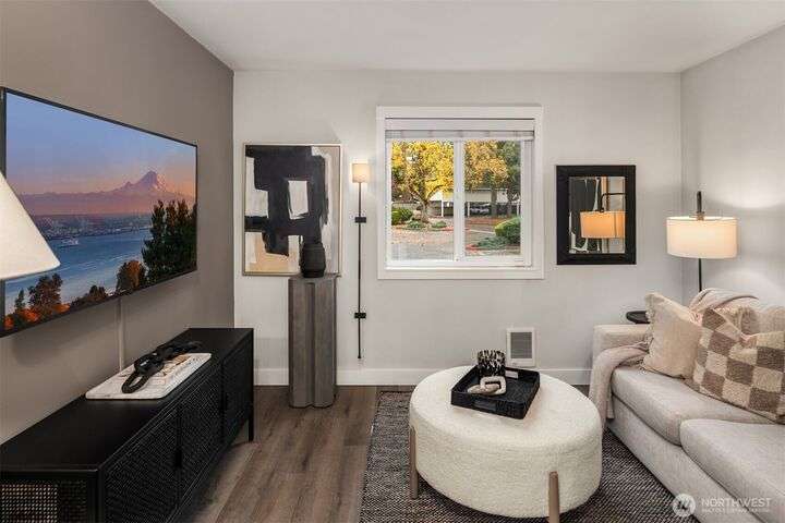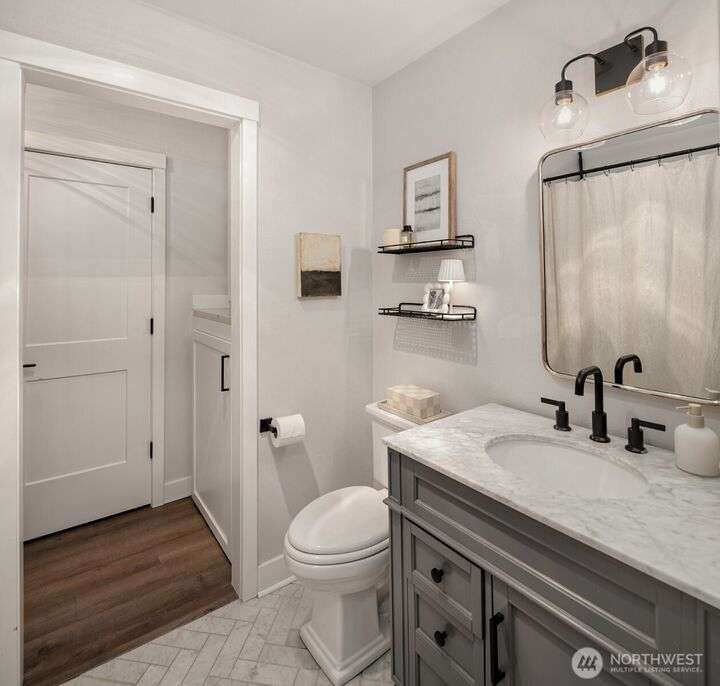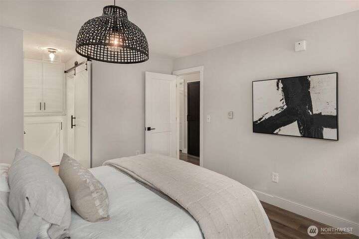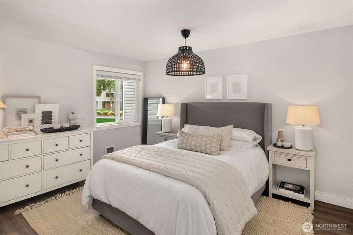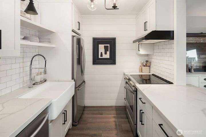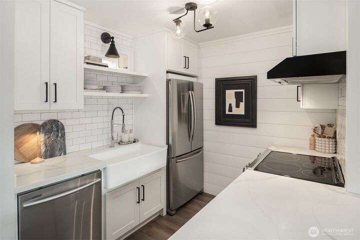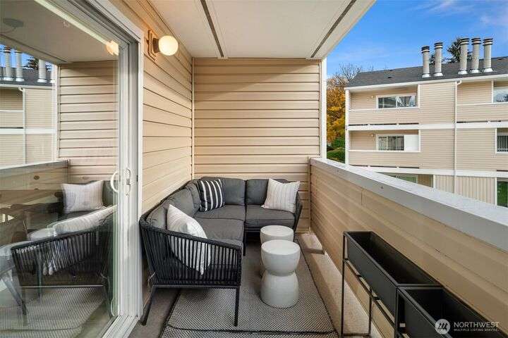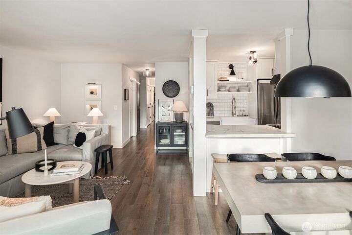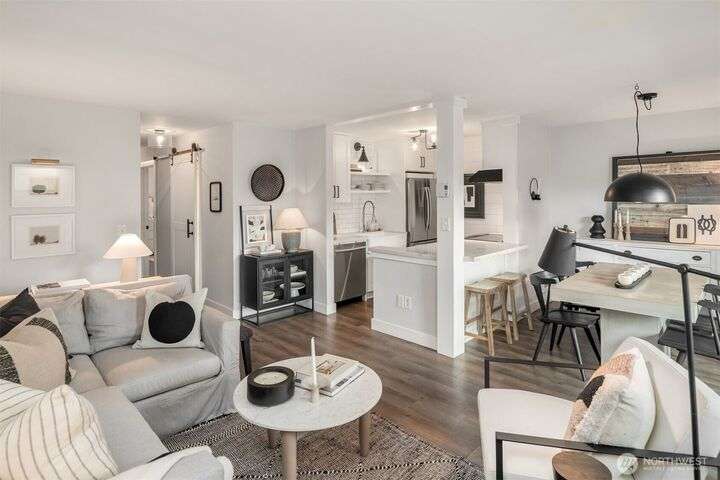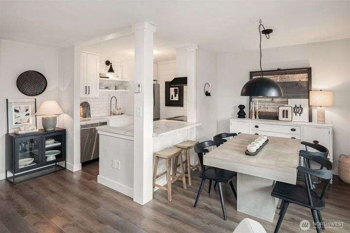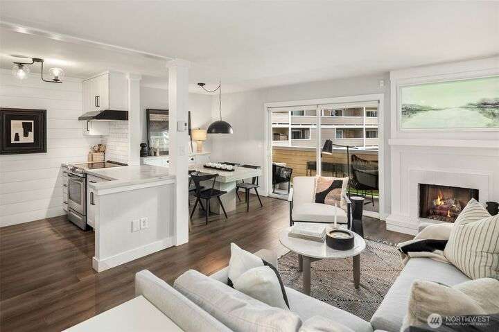Exquisitely Renovated Upper Floor 2 Bd Condo in Kirkland, Salish Village. LVP flooring thru-out, inviting chef's kitchen w/new cabinetry, quartz countertops, farmhouse sink, tile backsplash, SS appliances & pantry. Open concept living & dining w/South facing deck! New doors, trim, ceiling refinished & interior paint. Updated bath w/marble floors, resurfaced shower/tub & vanity. New Shelving Systems in Primary + additl Bed/bonus room. Washer/Dryer in Unit. Amenities: EV Charger/Pool/hot tub/gym/party rm. 1 covered parking spot, lots of guest parking, no rental cap, strong HOA & investment potential! Lk Wa Schools! Min to The Village Shops at Totem Lake, Evergreen Hospital & Woodinville Wineries! Near 405/520, Microsoft, Amazon, Dntn Kirkland