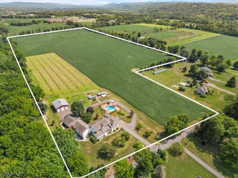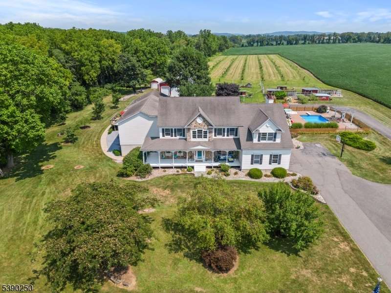 Back on the market! No fault of the sellers - buyer couldn't perform. This beautiful custom colonial is sitting on 35+ farm assessed acres. Expansive 6400 sqft home has a main house and in-law suite. Main house hosts a 2-story foyer, private ofc w/ french doors, powder rm, living rm, formal dining rm, expansive kitchen w/ large center island and access to deck, 2-story great rm w/ fieldstone fireplace, laundry rm, and 3 car garage. Hardwood flooring and extensive millwork throughout. 2nd fl hosts the primary suite and 3 additional bedrooms and full bath. The primary suite is a luxurious retreat w/ large sitting area, primary ensuite w/ jetted tub, stall shower, and generous closet space. The in-law suite is connected via the game room. Game room is 50x22 w/ large wet bar, cathedral ceiling, and full bath. Beneath the game room is a 50x22 heated workshop w/ 1/2 bath. In-law suite has private handicapped accessible entrance, private deck, living rm, kitchen, bedroom w/ ensuite, laundry, and full basement. Both residences walk out to the backyard for full enjoyment of the in-ground saltwater pool. Exterior of this gem has 48x40 outbuilding w/ 3 bays including 1 horse stall. Be sure to stroll through the 6 acre chestnut orchard. Whether you have a passion for horses or are searching for the perfect sanctuary outside the city - this property offers it all.