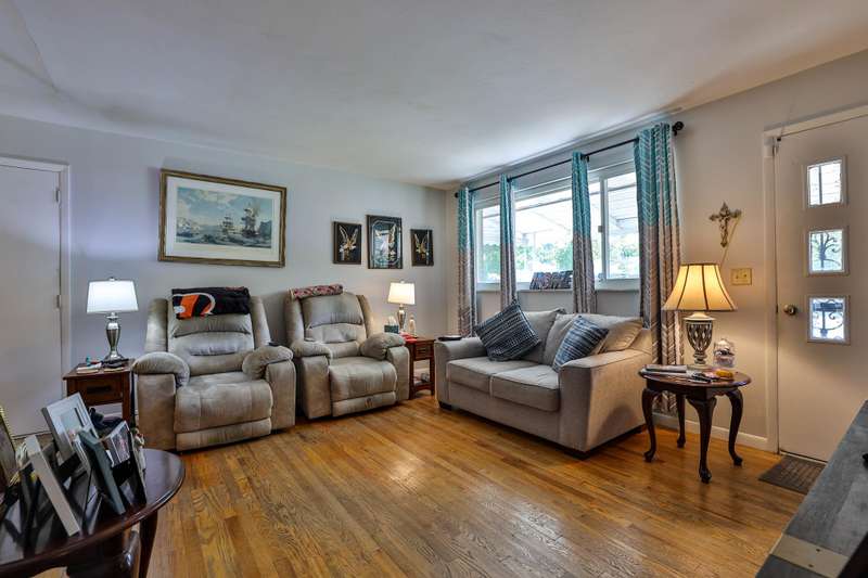 Move Right In! 3 Bedroom brick ranch on no outlet street-Inviting front porch- HVAC 2022-Equiupped eat in kitchen-Extra insulation added-Hardwood floors in all bedrooms-Remodeled hall bathroom-Lower level Family room + Rec room an full bath-Large 3 season room and attached patio overlooking fenced rear yard-Convenient to downtown College Hill-Washer/Dryer included