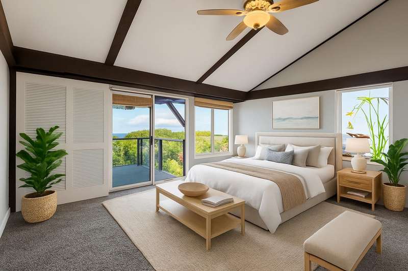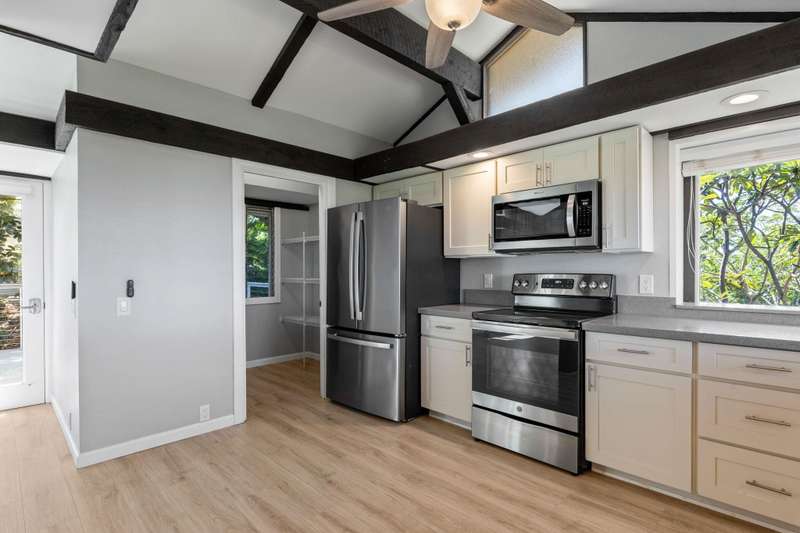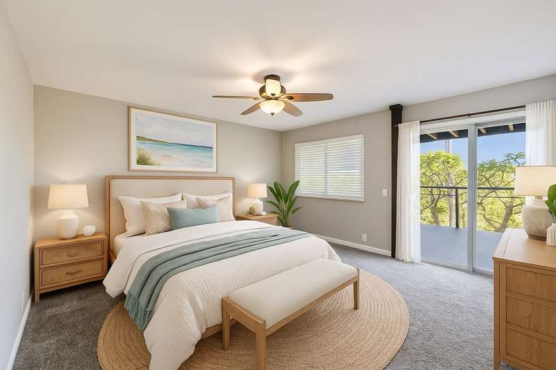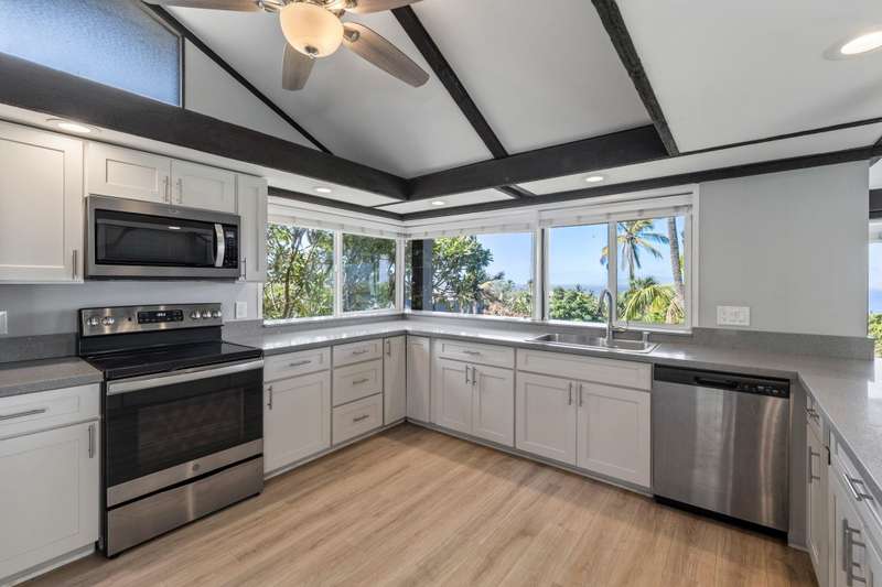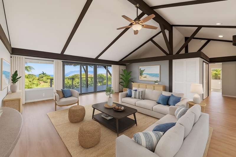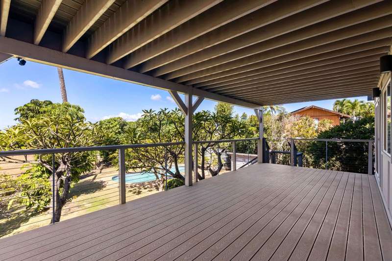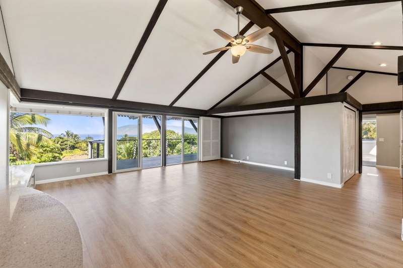 Discover one of Maui Meadows' hidden gems at the end of a quiet, private cul-de-sac. This beautifully updated home feels like a modern treehouse, surrounded by stunning ocean, mountain, and sunset views with no wires in your view and you can enjoy them from nearly every room. The main level features bright, open living, a contemporary kitchen, and a gorgeous primary suite with a soaking tub. Downstairs offers a large family room, two spacious bedrooms, abundant storage, and walk-out access to the pool, hot tub, and entertaining deck. With tropical landscaping, low-maintenance materials throughout, and an adjacent lot optionally available to the buyer, this is a rare Maui Meadows retreat offering privacy, views, and flexible living in one of South Maui's most desired neighborhoods.