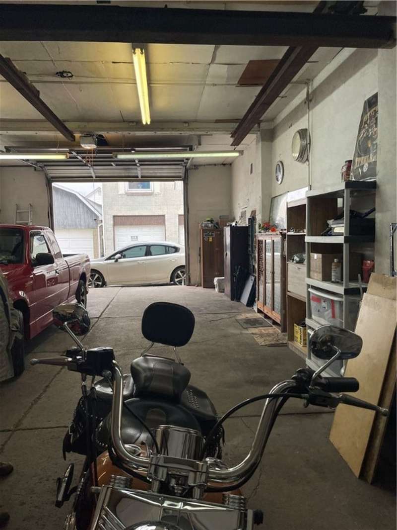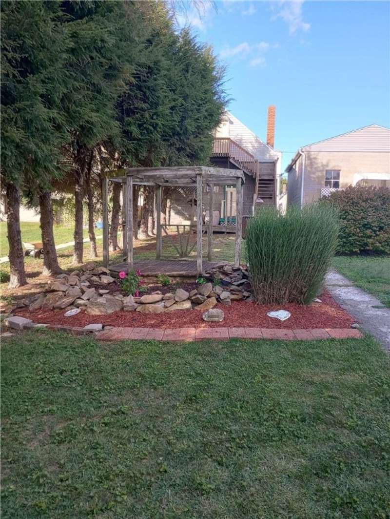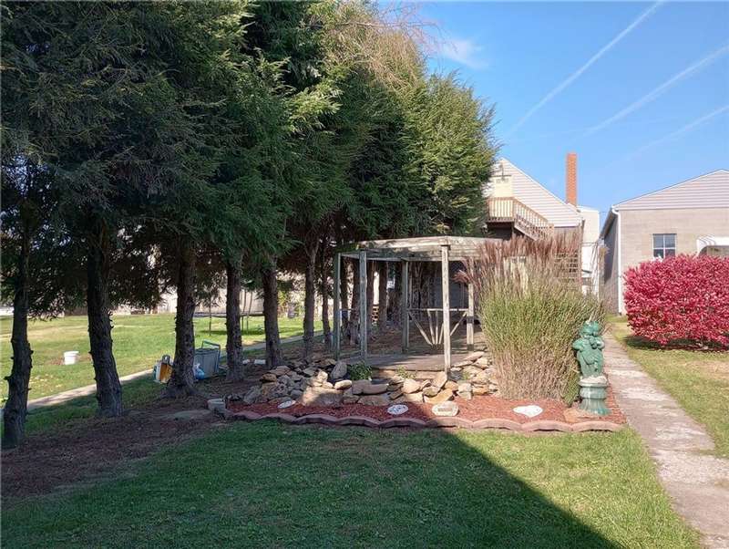 Quaint Colonial with 2 covered porches (one Large one in front and a cement one in back) to enjoy fresh air and take in the surrounding flora and fauna of the recently renovated landscape. The home has new central air, hot water tank, and alarm system. Gas Stove and large refrigerator and double bowl sink with a forever SPACIOUS lovely counter top make up this inviting eat-in kitchen. The lovely to die for 12 ft. ceiling 4 car mega insulated garage boasts a new garage door opener and a hanging ceiling heater with ability for gas/propane heat. It also has a mega 2 room storage area on second floor that could be converted to apartment if needed.(can put 40 ft. RV in garage). In home the half bath could be equipped with a shower. New sewage drains. Long sidewalk leads to detached garage. Cement Pad for a hot tub or extra shed toward back of property. Also gazebo area. Refrigerator, gas stove, washer, dryer, alarm system Central air included and a HOME WARRANTY