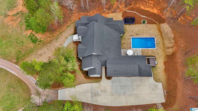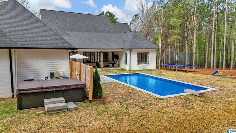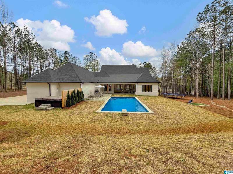 This stunning home, built in 2023, combines modern luxury with privacy, situated on a secluded over 3 acre lot. The main level offers five spacious bedrooms, four beautifully designed bathrooms, with one being by the pool, an open-concept living and dining area, and a large, well-equipped laundry room. Upstairs, you'll find a versatile bonus room that can serve as an additional bedroom or recreational space, along with a private office and full bathroom. The kitchen features high-quality appliances and generous counter space, perfect for everyday cooking and entertaining. Large windows throughout bring in natural light, creating a bright and inviting atmosphere. The outdoor patio and pool area with private hot tub provide the ideal setting for relaxation and hosting guests. This home is thoughtfully designed to offer comfort, elegance, and convenience, and is move-in ready for you to enjoy.