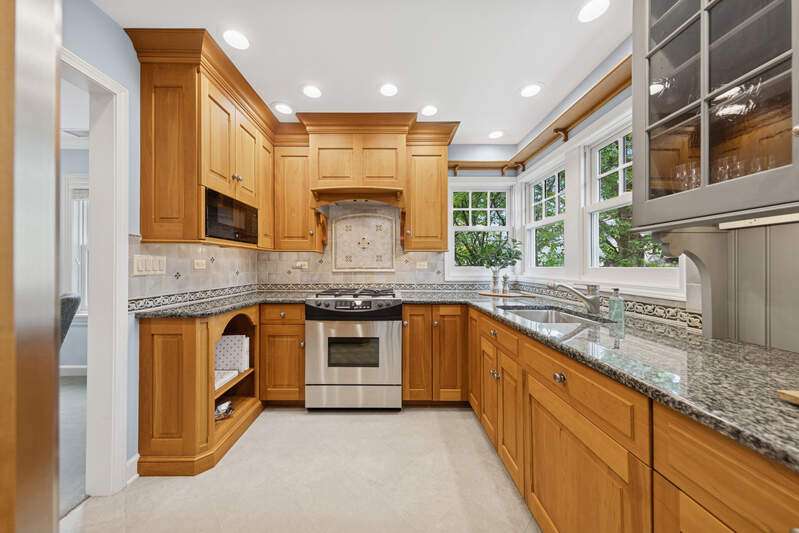 Exceptionally maintained brick ranch on a beautifully landscaped corner lot. Open floorplan with spacious bedrooms, neutral decor and natural lighting throughout. Renovated chef's kitchen featuring bespoke cabinets, premium imported tiles, granite countertops, and top-tier appliances. Primary featuring a roomy walk-in cedar closet. Modernized spa-inspired bathroom incorporates classic design elements. Mudroom/laundry. Perennial gardens and mature plantings. 2 car detached garage. Short stroll from The Lane Elementary School, the Hinsdale Middle School, commuter to Chicago, the heart of the village of historic Hinsdale and all the charms it offers. Hinsdale Central High School. Conveniently situated close to Whole Foods market, all expressways and both airports. Show with confidence!