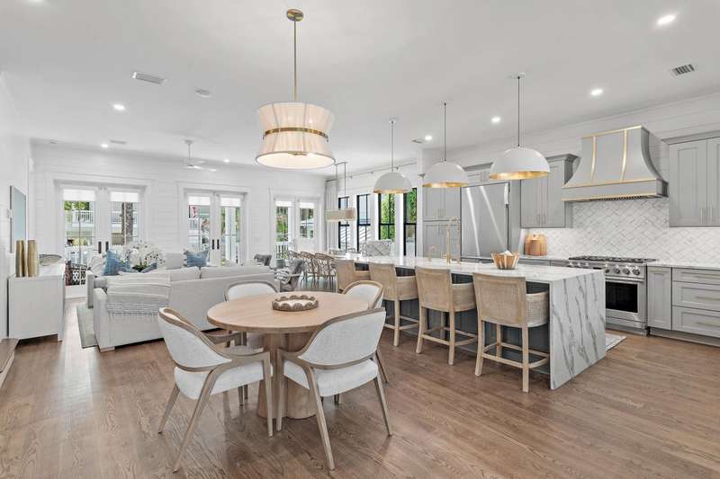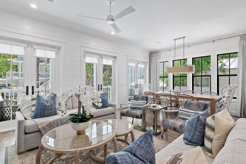 Welcome to 81 Nightcap, a stunning new construction home in the heart of Old Seagrove?just one block from the beach and a short stroll to iconic Seaside. This 6 bedroom, 6.5 bath luxury retreat blends modern sophistication with timeless coastal charm, making it an ideal full-time residence, second home, or investment property. From its crisp white exterior to the designer-selected furnishings & high-end finishes, every detail has been thoughtfully curated to impress. Step inside to an open-concept layout designed for both comfort and entertaining, featuring a gourmet kitchen with top-of-the-line appliances, custom cabinetry, and a spacious island perfect for hosting gatherings. Multiple living areas, generous ensuite bedrooms and a flowing layout provide ample space for friends & family. This custom designed home also includes two primary suites, an ADA-accessible bedroom, an elevator, dual laundry, and is being offered fully furnished and rental ready for added convenience. The entire top floor serves as a media and game room, complete with a foosball table, cozy lounge, and reading area, and leads to a custom built-in bunk room with serene views of the surrounding lush greenery. Outdoor living shines with a private pool, sun deck, and an expansive outdoor entertaining area, including a covered patio and alfresco dining space under the cabana. Whether you're gathering poolside, enjoying morning coffee on one of the many porches, or heading to nearby Seaside for shopping or a meal at Airstream Row, this home offers the ultimate in 30A living. With plenty of parking and unmatched proximity to white-sand beaches, 81 Nightcap is truly a one-of-a-kind coastal sanctuary.