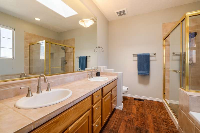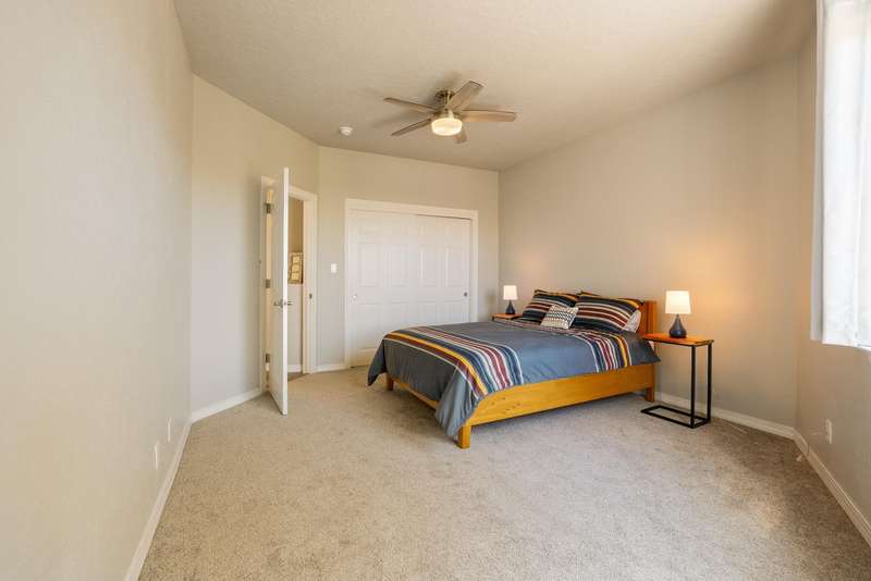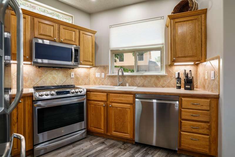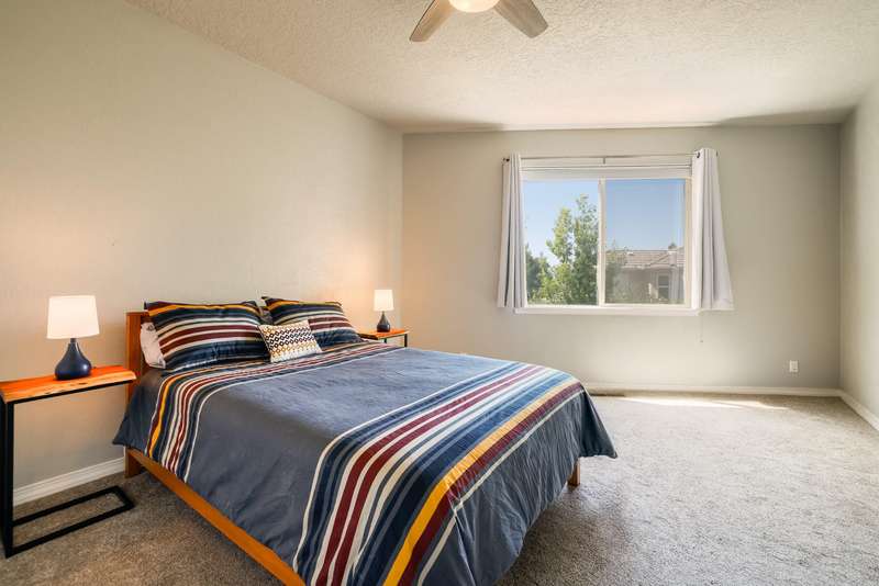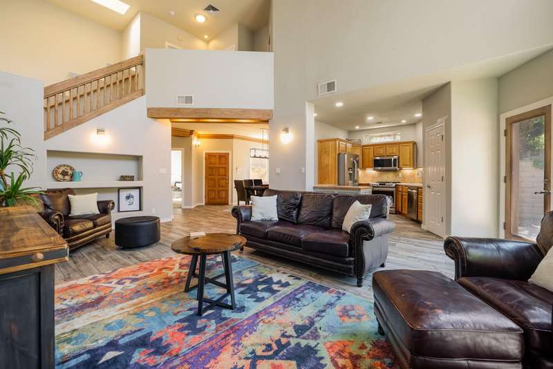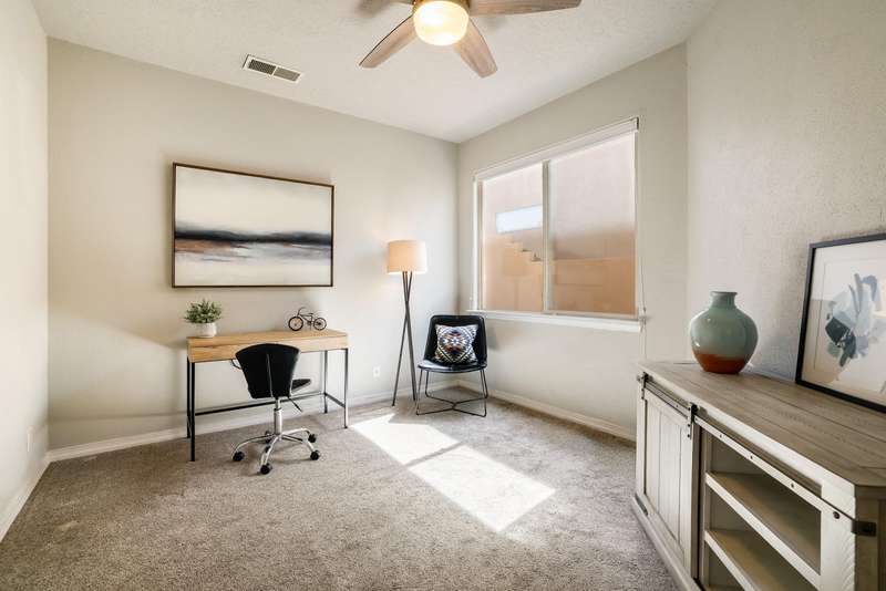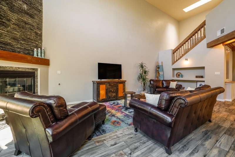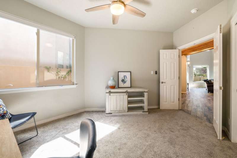 PRICED REDUCED AND FABULOUS VIEWS! This home is light & bright w/ a functional floor plan. Home is entered through through a private courtyard gate. 1 bdrm on the main with use of 3/4 bath. Large living room has soaring ceilings w/ a stacked stone fireplace, wood accents & room for 2 seating areas or nook. Primary bdrm features walk in closet, separate bath & shower + 2 sinks. Balcony w/ great views of the Sandias! Updated tile flooring throughout. Newer stainless oven, microwave, dishwasher, water heater & furnace. Location makes it an easy commute to most places in ABQ & offers quick access to both freeways. Close to foothill trails & High Desert park w/ both tennis courts & playground.