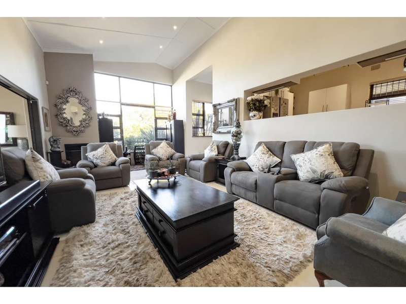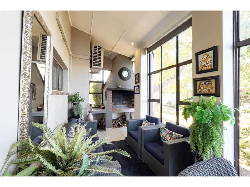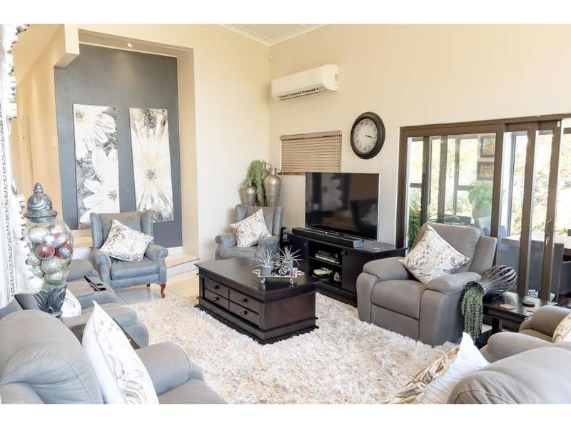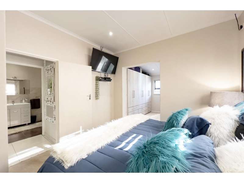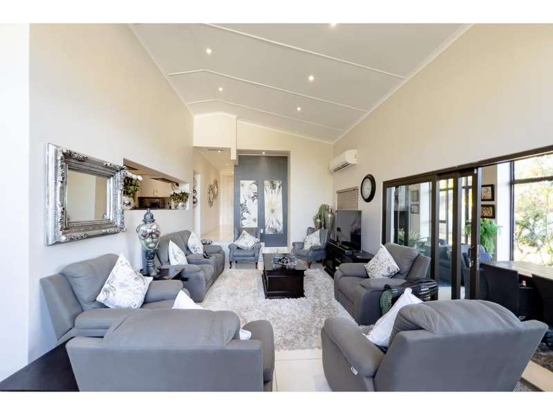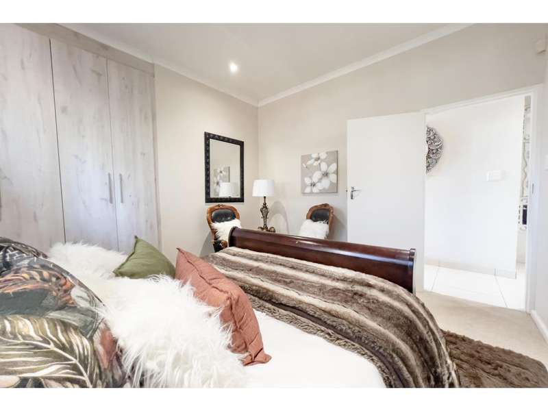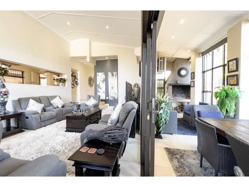 This immaculate 3-bedroom home is nestled in a tranquil cul-de-sac, with only five exclusive homes. This property offers unmatched peace, privacy and a true sense of community. The welcoming entrance hall leads to a spacious lounge with a fireplace. An enclosed patio leads off the lounge area and opens up with stacker doors to the lush back garden. This home offers three generously sized bedrooms and two bathrooms. The main spacious bedroom offers a full en-suite bathroom and a walk-in cupboard. Kitchen opens to the lounge area through a wide over - counter opening, creating a sense of connection while maintaining defined spaces. The pass-through design is perfect for serving, entertaining or casual conversation between the kitchen and living area. The kitchen has ample cupboard space, enough space for every kitchen essential without compromising on style. A separate 2-room outbuilding, currently used as a laundry room and workshop. It can also be perfect for a guest suite or flatlet for future rental income. This home offers additional features: Electric fencing 5 air conditioner units 8 solar panels and an inverter Situated next to a greenbelt. This home is waiting for a family to fill its walls with laughter and joy! Don't miss out on this rare find. Contact me today for a viewing