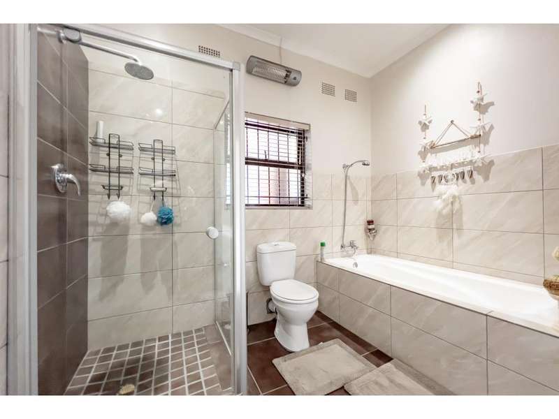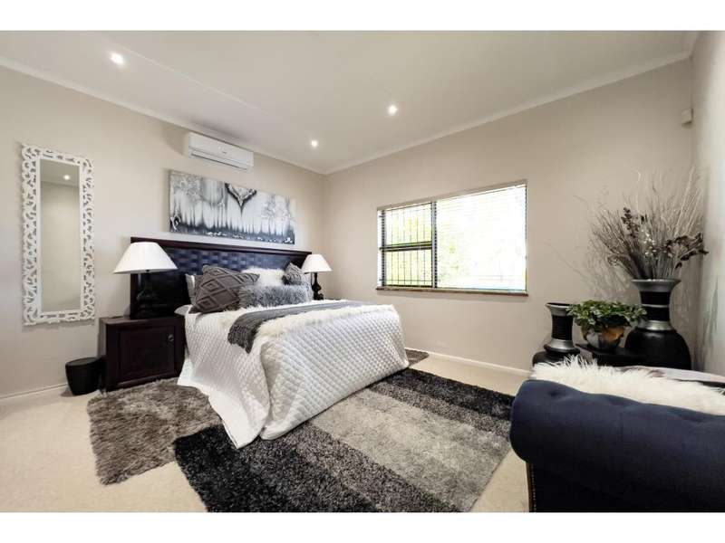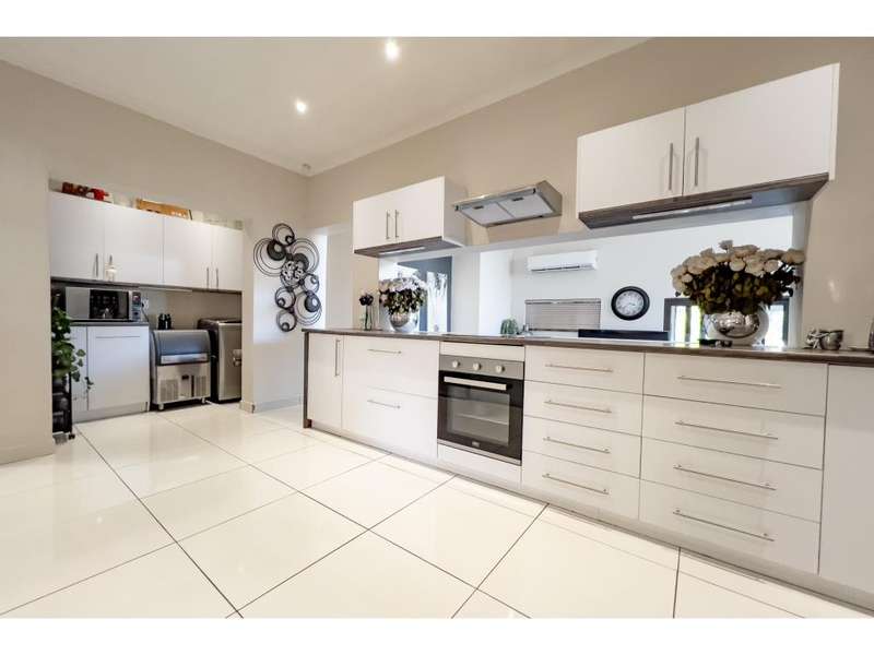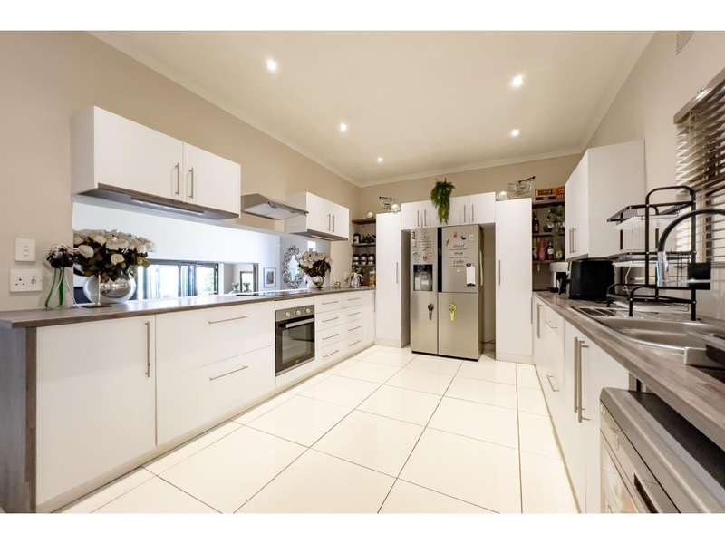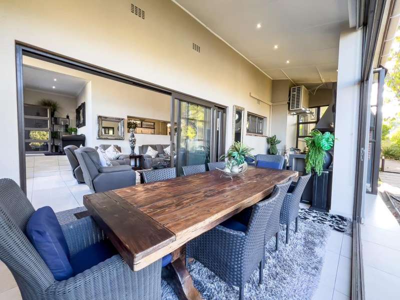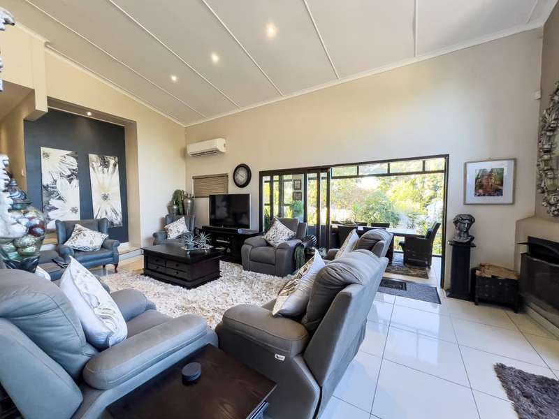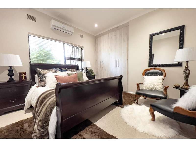 This immaculate 3-bedroom home is nestled in a tranquil cul-de-sac, with only five exclusive homes. This property offers unmatched peace, privacy and a true sense of community. The welcoming entrance hall leads to a spacious lounge with a fireplace. An enclosed patio leads off the lounge area and opens up with stacker doors to the lush back garden. This home offers three generously sized bedrooms and two bathrooms. The main spacious bedroom offers a full en-suite bathroom and a walk-in cupboard. Kitchen opens to the lounge area through a wide over - counter opening, creating a sense of connection while maintaining defined spaces. The pass-through design is perfect for serving, entertaining or casual conversation between the kitchen and living area. The kitchen has ample cupboard space, enough space for every kitchen essential without compromising on style. A separate 2-room outbuilding, currently used as a laundry room and workshop. It can also be perfect for a guest suite or flatlet for future rental income. This home offers additional features: Electric fencing 5 air conditioner units 8 solar panels and an inverter Situated next to a greenbelt. This home is waiting for a family to fill its walls with laughter and joy! Don't miss out on this rare find. Contact me today for a viewing