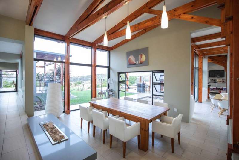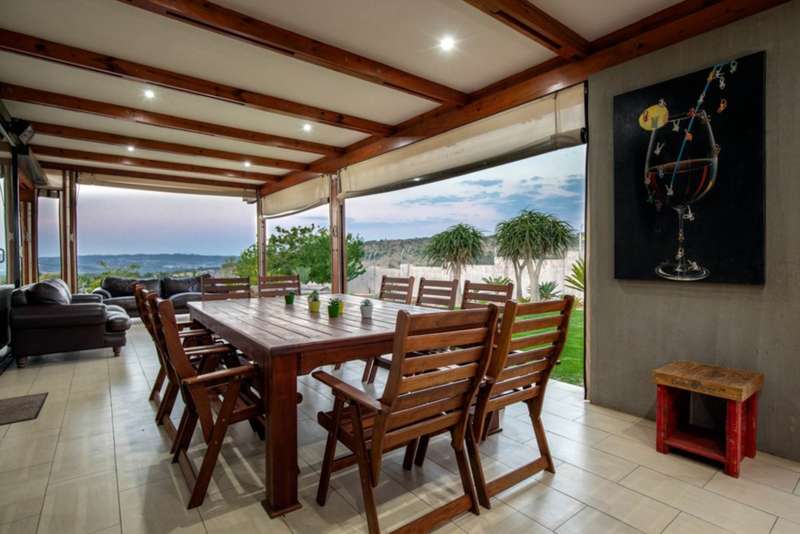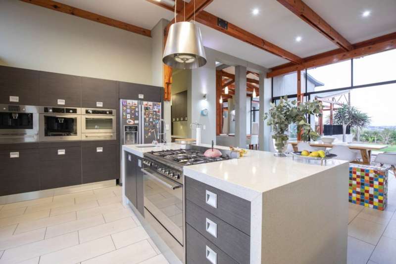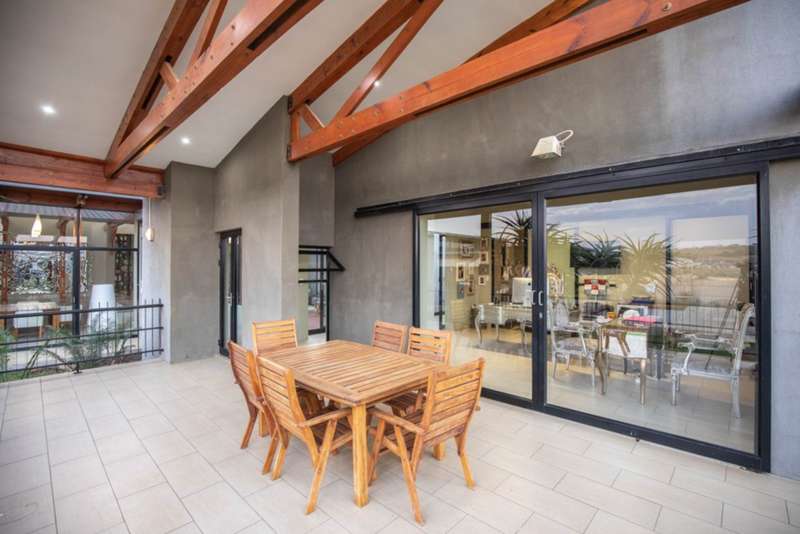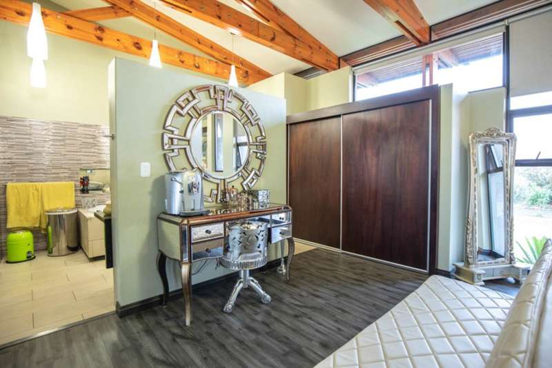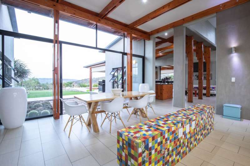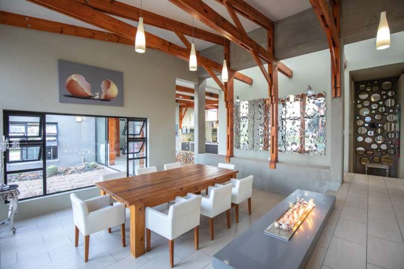 Glass, concrete, wood, and metal serve as the basis for drawing rich associations between space, structure, material, and location. What emerges is a house distinguished by contrasting interplay between heavy and light, load and support. The horizontal building structure is thoughtfully embedded into the contours of the hillside; the transition from the interior to the exterior seamless and fluid expanding out to a sparkling pool, sprawling garden furthering indigenous trees and plants. It is the pinnacle of modern design and architecture combining function and form. This property should be seen to appreciate it in its full splendour. It consists of 4 bedrooms, 2 of which have en-suite amenities. Four living areas with gas fire-places. The magnificent kitchen overlooks the Zwavelpoort valley and a large part of the Bronberg. The finishes on this property is nothing but outstanding. The property also features 8 garages, staff accommodation and a rainwater catchment system capable of storing 50 000 litres of rain water. This property is a must have and should be YOURS!