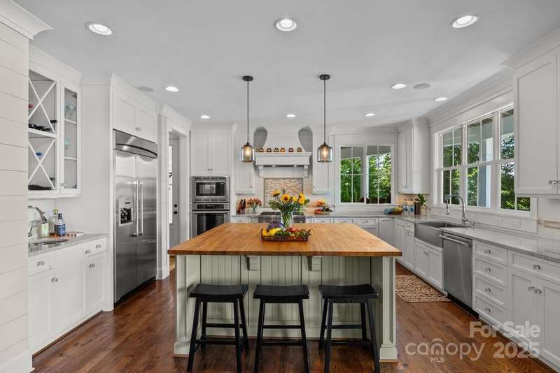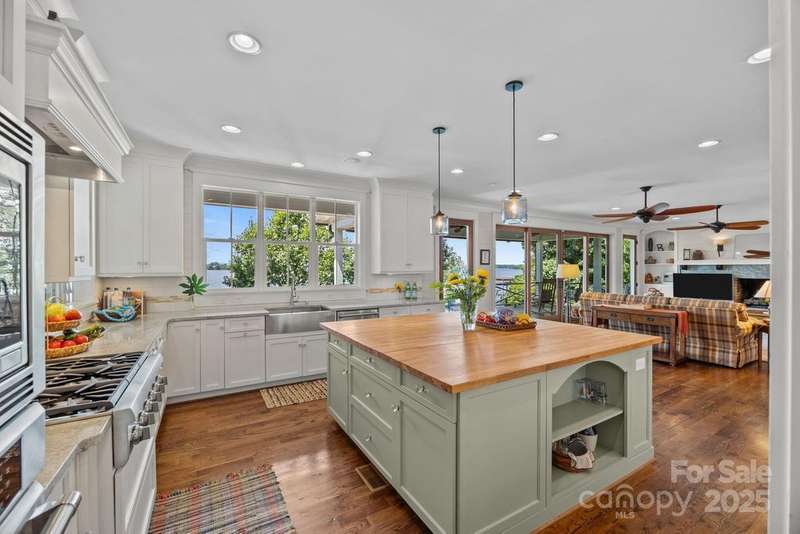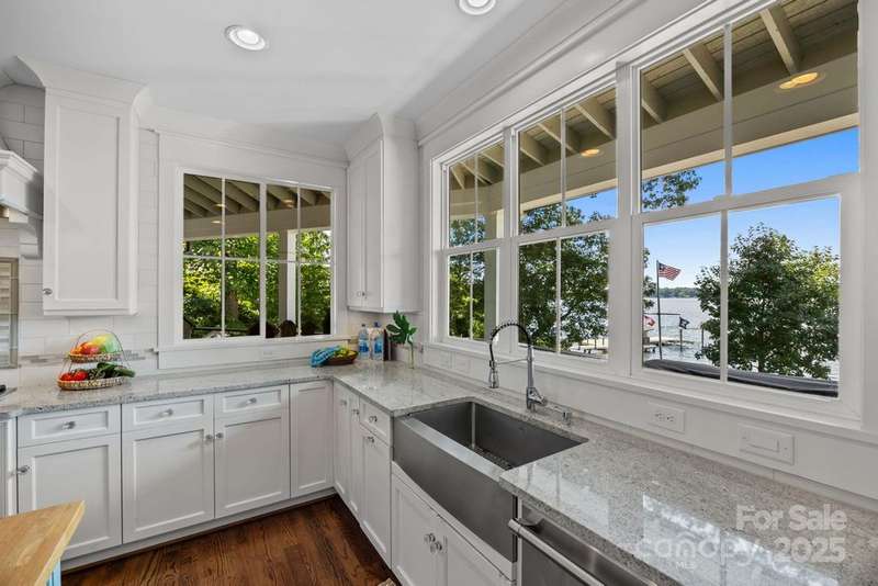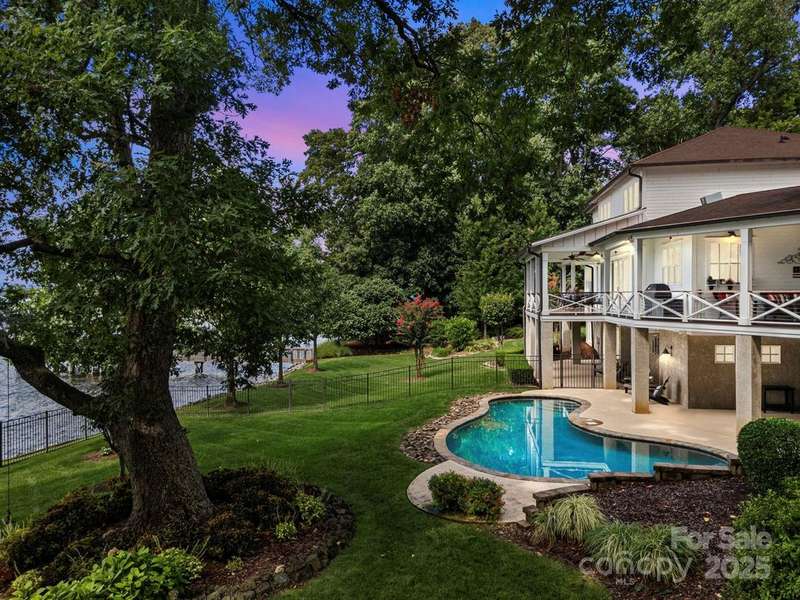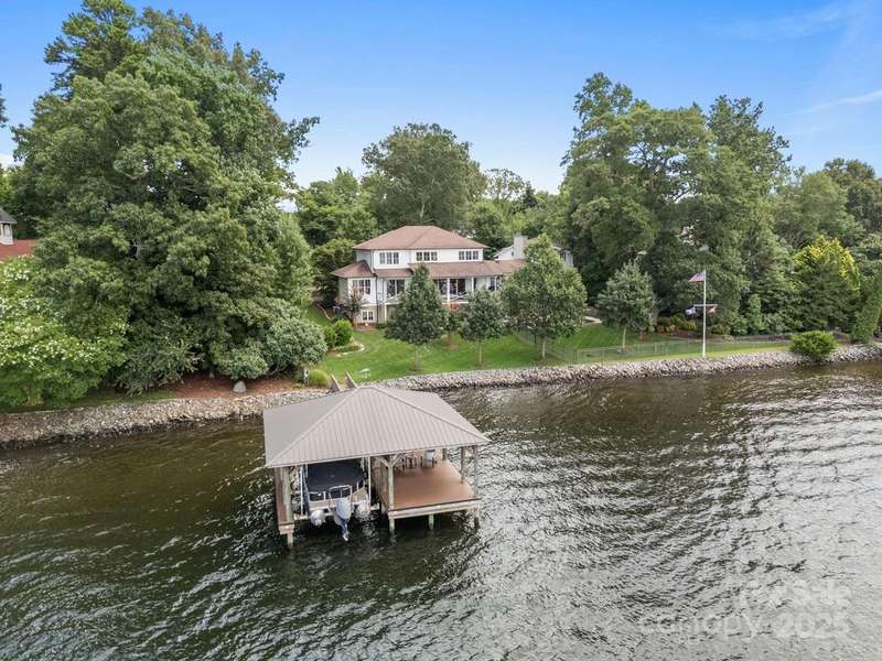 Welcome to 19029 Brigadoon Place. Picture-perfect sunset view home with timeless curb appeal and over 220 feet of prime waterfront living on the main channel. This 5 bedroom, 5 1/2 bath home offers an open floor plan with luxury finishes throughout, including hardwood floors on the main, upper level, and travertine tile in the basement. A light-filled kitchen flows into the welcoming great room with a dramatic fireplace setting the stage for relaxed evenings. Main-level primary suite offers stunning lake views and a spa-like bath. The finished basement adds flexible living space, while a 3-car garage, pantry, drop zone, home office, and two laundry rooms enhance everyday living. The rear yard provides an elegant backdrop for year-round living with covered porches featuring mahogany flooring, an in-ground pool, an outdoor fireplace, and sunset views of Little Mountain. A private dock, exceptional lot, and walking distance to The Peninsula Club...ensure this is the one!!