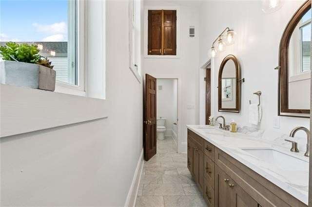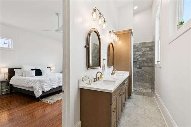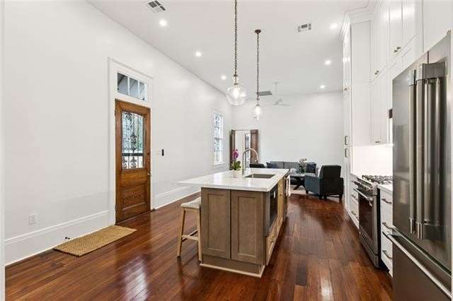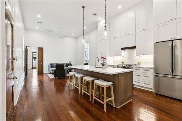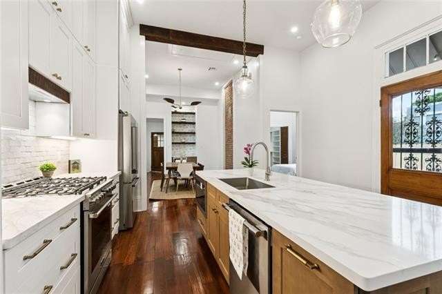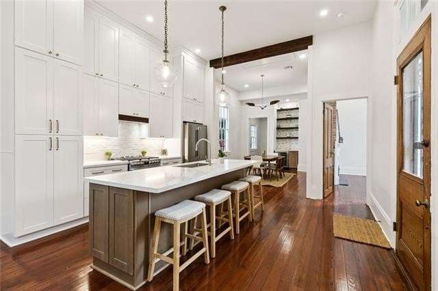 Custom Restoration just completed on this 1890’s historic Uptown gem. Original structure was gut renovated and beautifully reimagined for today’s living while maintaining architecture details and loads of charm. Enjoy original heart pine hardwood floors, brick fireplace, soaring 12 foot ceilings, and antique wood doors. Entertain in the expansive open layout whereby the living room flows seamlessly to the kitchen and dining room. Chef’s kitchen boasts new professional stainless steel appliances, quartz counters and a 9’ breakfast island. Dining room features a beverage cooler, exposed brick wall and custom antique wood shelves. 3 spacious bedrooms with 3 luxurious en suite bathrooms and custom walk-in closets plus an office nook. Primary suites on both the first and second floors offers exceptional flexibility. Bathrooms feature marble, Zellige tile, Quartz counters and custom glass shower enclosures. Dine al fresco on the reclaimed brick patio overlooking a grassy enclosed yard or sip morning coffee from the breezy front porch. The corner lot provides privacy and loads of natural light surrounded by magnolia and cypress trees. A rare and coveted oversized GARAGE with insulation and a/c unit round out this special home. Just blocks to Mardi Gras parades and vibrant Magazine St with some of the best shops, restaurants, and art galleries in the city. Owner/Agent.