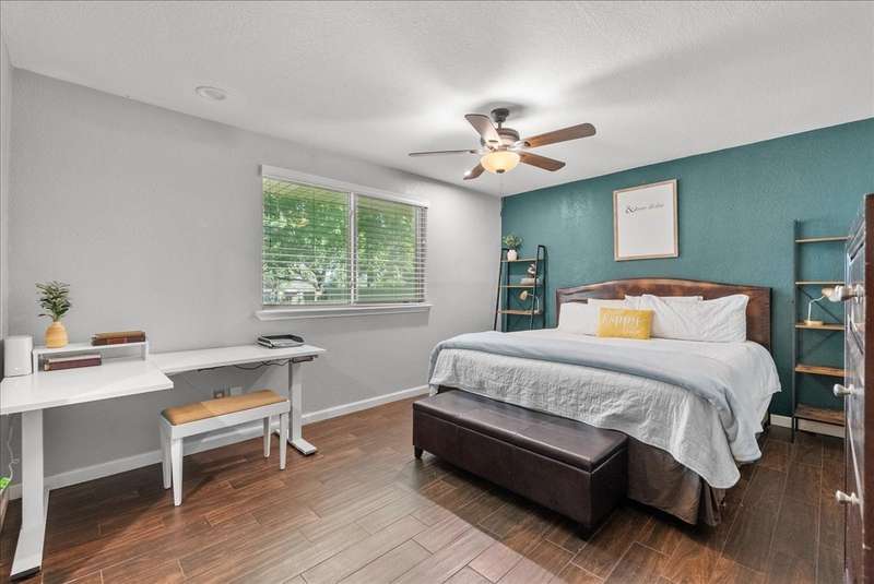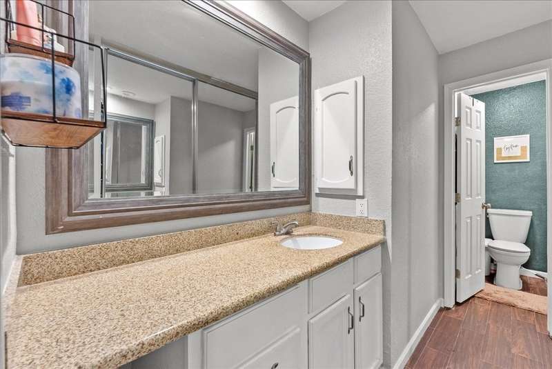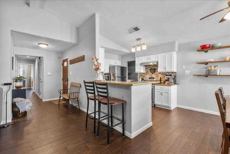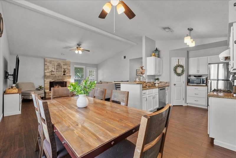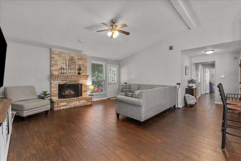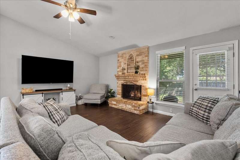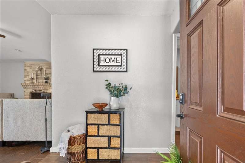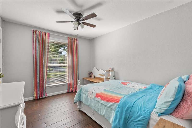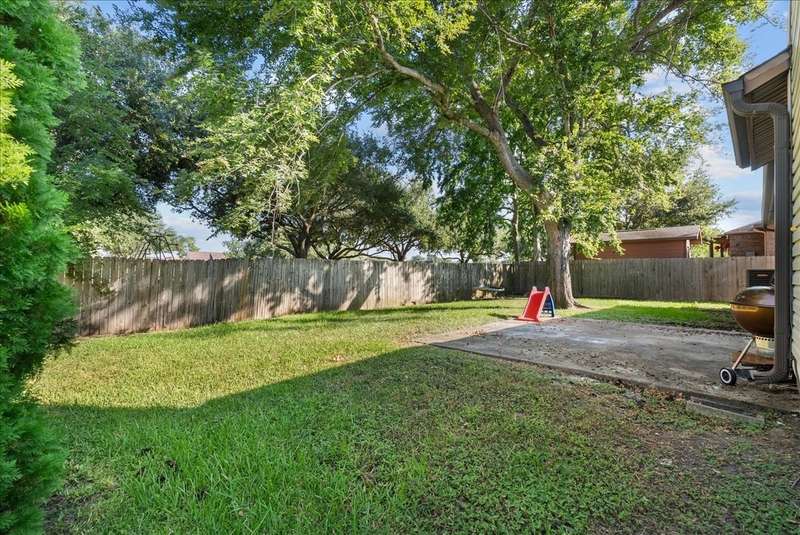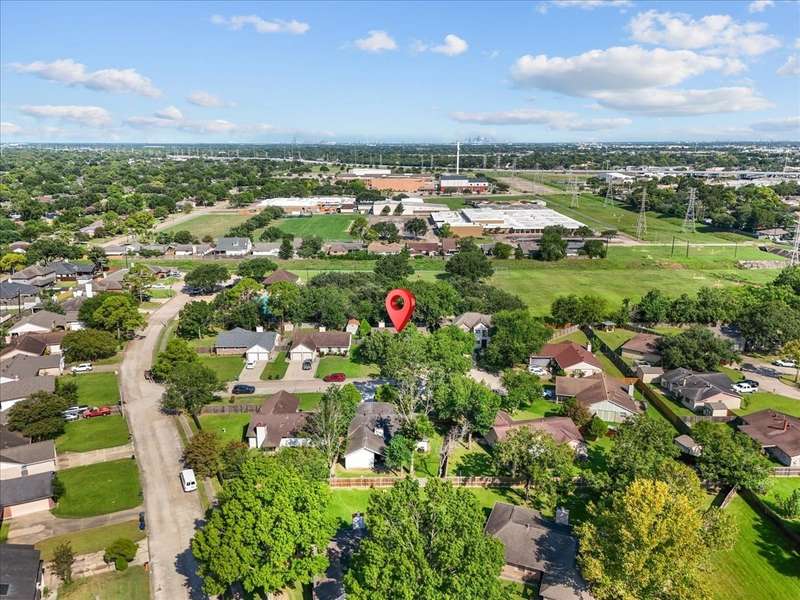 First look and you'll immediately notice the long UPDATED DRIVEWAY and BRAND NEW ROOF WITH WARRANTY! Step inside to an inviting open-concept layout featuring FRESHLY PAINTED WHITE KITCHEN CABINETS, GRANITE COUNTER-TOPS, and easy-to-maintain WOOD TILE FLOORING THROUGH OUT. Neutral paint tones, FRAMED MIRRORS, and UPDATED FIXTURES IN BOTH BATHROOMS add a modern touch. Gather around the cozy GAS-BRICK FIREPLACE under SOARING CEILINGS in the living and dining areas. The spacious backyard is perfect for evening get-togethers—whether it’s barbecues on the concrete patio or family playtime in the shade. Nestled in a QUIET CUL-DE-SAC with minimal traffic, this home offers both comfort and convenience. Quick access to I-45 and the Beltway, making commutes a breeze to Houston. Schedule a tour today, your Home Sweet Home awaits!