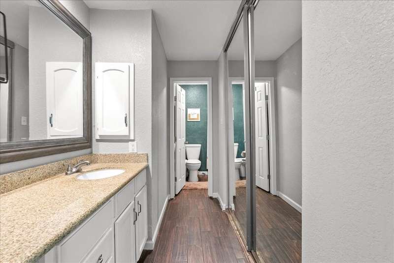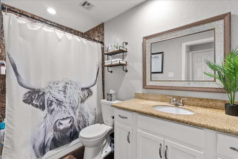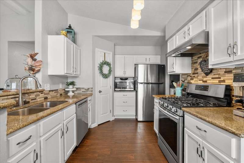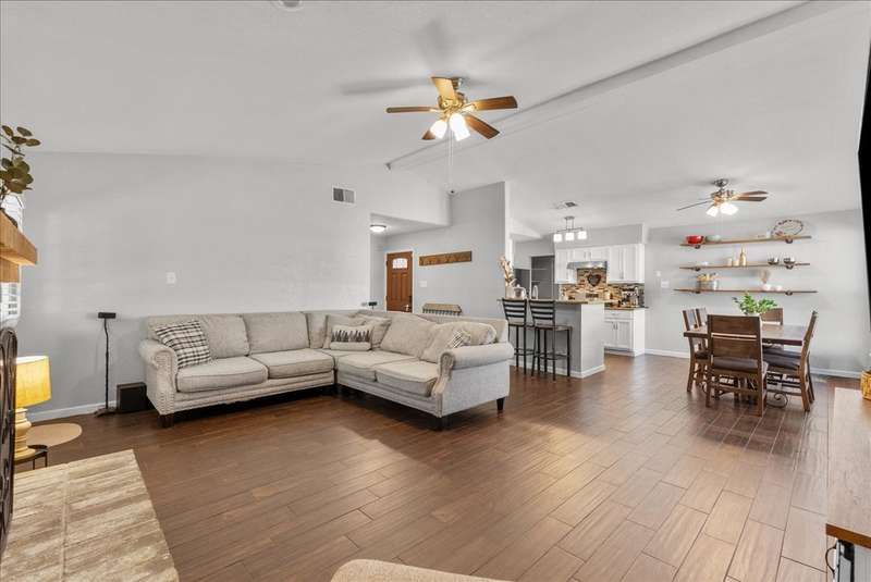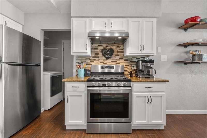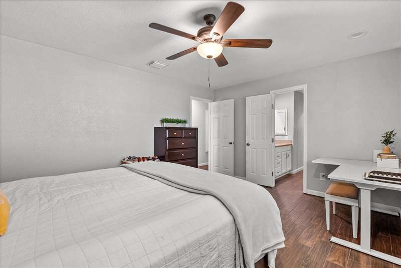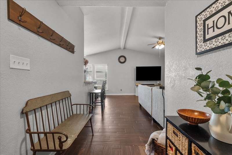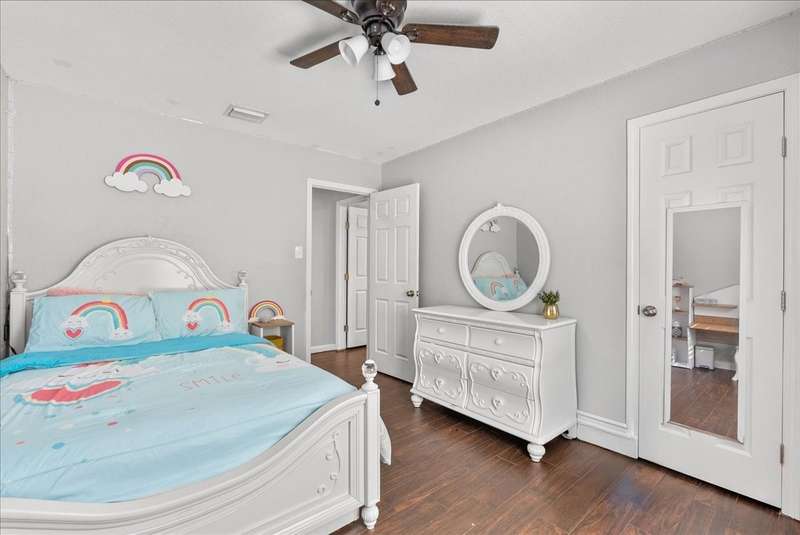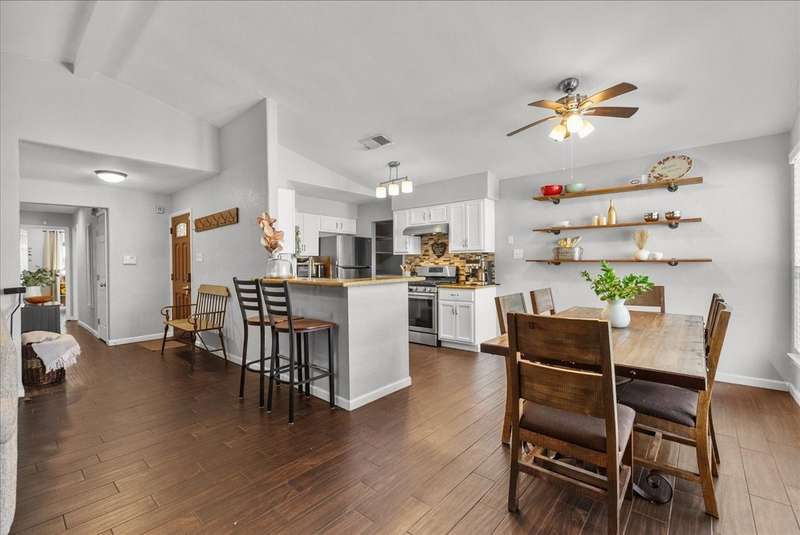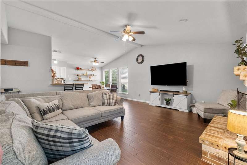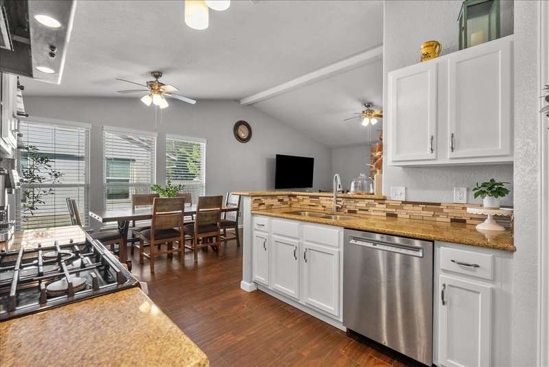 First look and you'll immediately notice the long UPDATED DRIVEWAY and BRAND NEW ROOF WITH WARRANTY! Step inside to an inviting open-concept layout featuring FRESHLY PAINTED WHITE KITCHEN CABINETS, GRANITE COUNTER-TOPS, and easy-to-maintain WOOD TILE FLOORING THROUGH OUT. Neutral paint tones, FRAMED MIRRORS, and UPDATED FIXTURES IN BOTH BATHROOMS add a modern touch. Gather around the cozy GAS-BRICK FIREPLACE under SOARING CEILINGS in the living and dining areas. The spacious backyard is perfect for evening get-togethers—whether it’s barbecues on the concrete patio or family playtime in the shade. Nestled in a QUIET CUL-DE-SAC with minimal traffic, this home offers both comfort and convenience. Quick access to I-45 and the Beltway, making commutes a breeze to Houston. Schedule a tour today, your Home Sweet Home awaits!