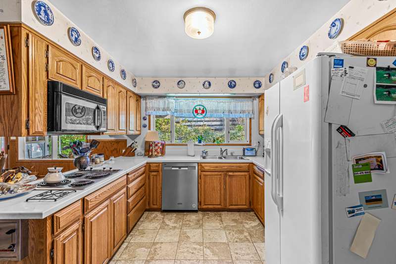 Extremely rare opportunity in Old East Medford on a quiet and private corner lot with beautiful views. Custom built in the mid-1950s by well-known builder Art Dubs, this home has been well cared for with a new high-end roof installed in 2019, a top-tier heating and air system added in 2023, and a new sewer line also replaced in 2019. The home features a great layout with separate living and family rooms, two fireplaces, wood floors, and a recently installed dishwasher. The kitchen includes all appliances. Outside you will find a large RV parking area, a covered carport, two storage areas including a large unit called the ''boat house'' with dirt floors, & a Lincoln log style shed with water & power, a greenhouse, & mature landscaping. The property also includes an oversized 2-car garage. This is a solid home with great bones & potential for updating to make it truly shine. Ideal for a first-time buyer or investor.