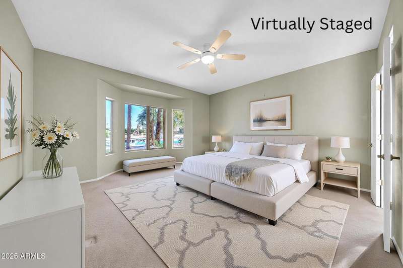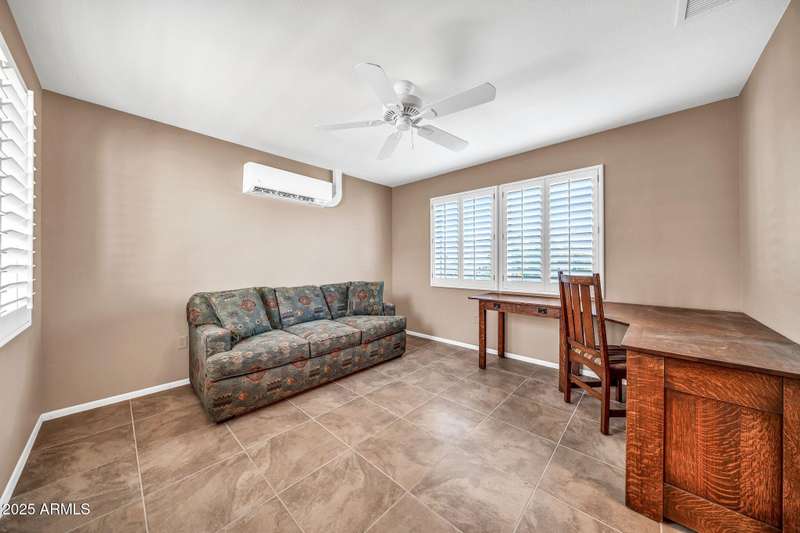 Beautifully maintained home in the heart of The Grand, Surprise's premier 45+ active adult community. This property offers 2 spacious bedrooms plus a den/office, 3 full baths, and a private full casita, ideal for guests. Located on the Desert Springs Golf Course, this home overlooks a picturesque par-3 hole with a tranquil water feature, providing peaceful views and a perfect backdrop for relaxing or entertaining. The extended covered patio is ideal for enjoying Arizona's beautiful weather and breathtaking sunrises. Inside, the home features an open, light-filled floor plan that has personality and charm. The primary suite includes a walk-in closet and a well-appointed bath.