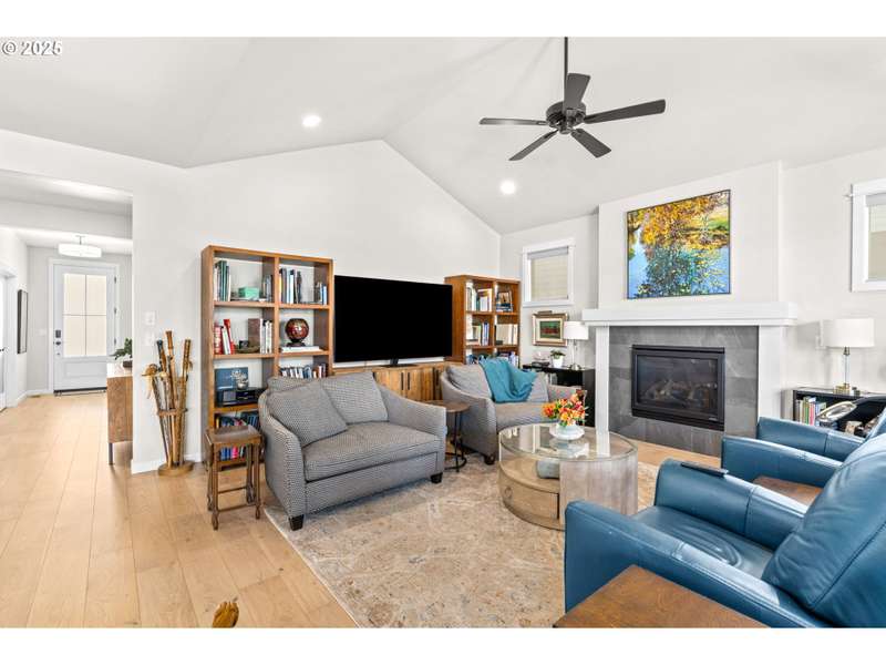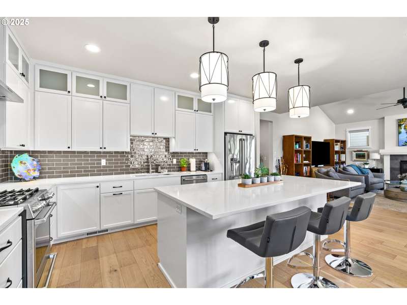 Tucked in the heart of North Gilham, this home brings together quality craftsmanship, modern comfort, and a location you’ll love coming home to. This one-level home welcomes you with vaulted ceilings and light pouring in through large windows, creating a bright and airy atmosphere from the moment you step inside. At the center of the home is a stylish kitchen with sleek quartz countertops, modern cabinetry, and a seamless flow into the dining eat area and great room—anchored by a cozy gas fireplace. With four well-sized bedrooms and thoughtful details throughout, the layout offers both function and warmth. The primary bedroom with an oversized shower and walk-in closet. The 4th bedroom with french doors could also be an office or craft room. Out back, a well-cared-for, low-maintenance backyard offers the perfect space for morning coffee, evening unwinds, or relaxed weekend gatherings, lending itself perfectly to outdoor living and dining with a Provençal-style garden and water features. From the house, enjoy unobstructed views of the Coburg Hills. This home is the perfect blend of charm, comfort, and convenience.