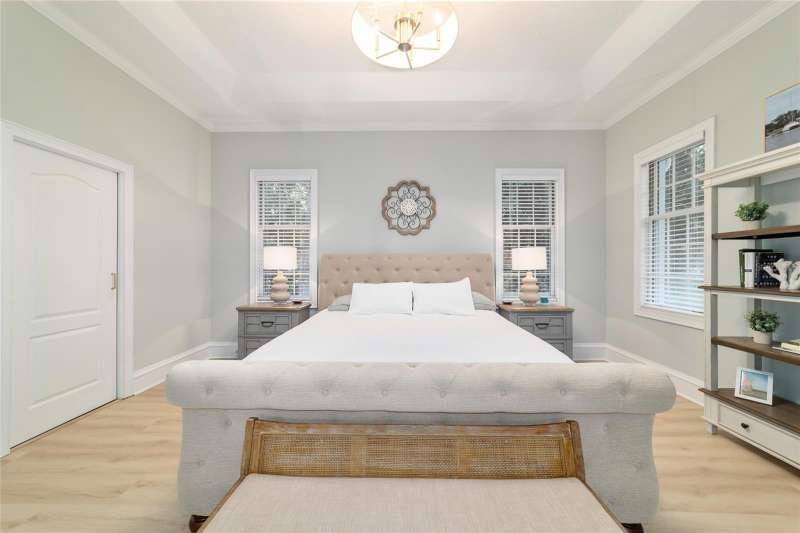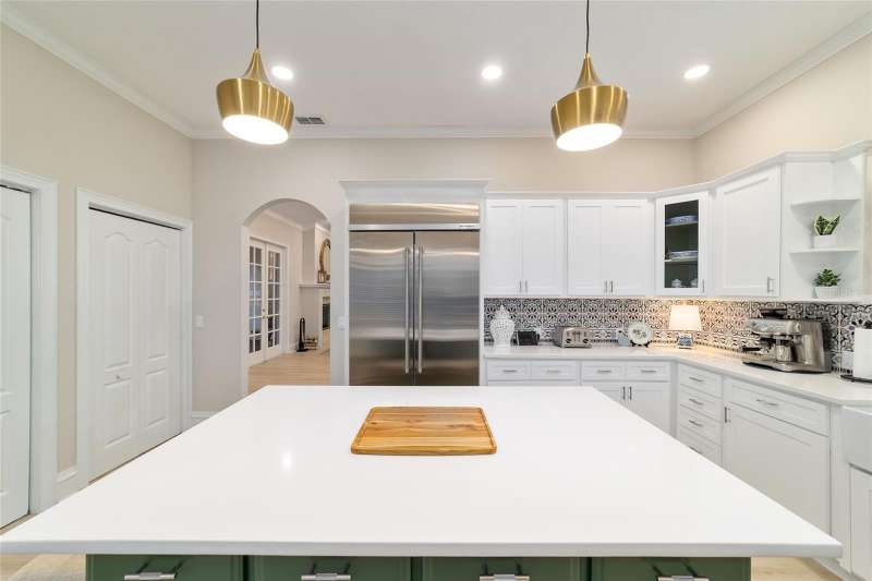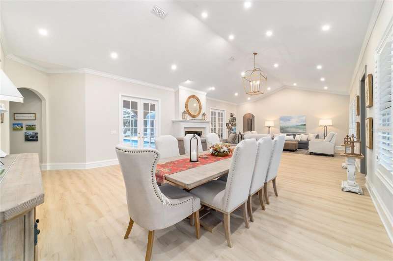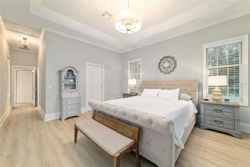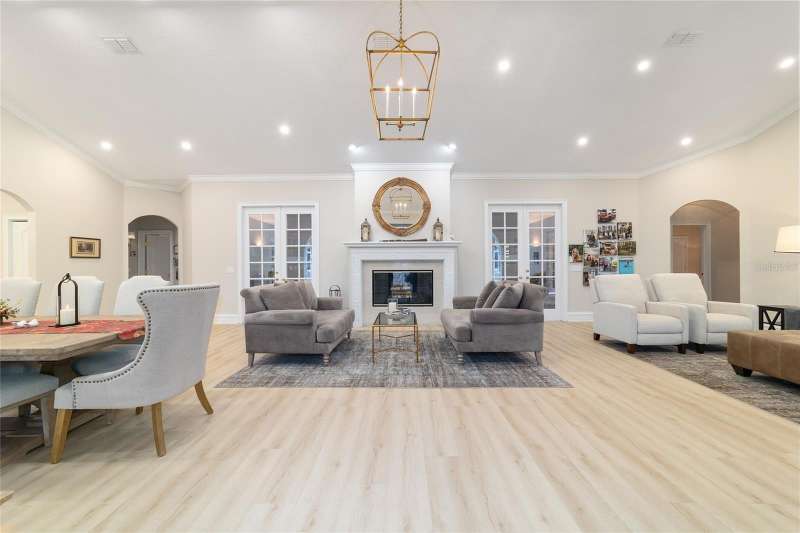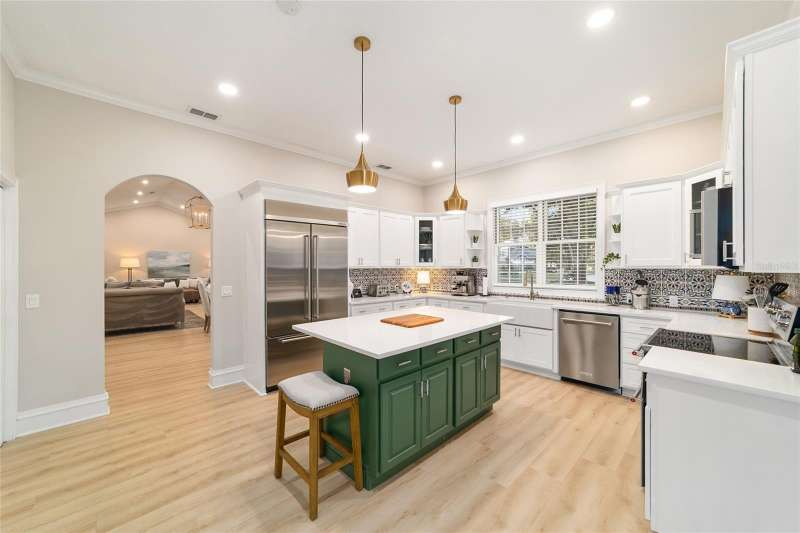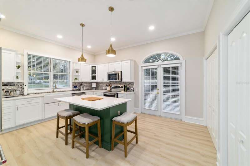 Welcome to this beautifully updated 4 bedroom, 3 bath home in the Country Club of Ocala, which backs up to a peaceful farm offering plenty of privacy. From the moment you pull up, you’ll notice all the care that’s gone into it — fresh exterior paint, new shutters and new pavers that lead from the driveway to the front porch. The backyard is truly the highlight, with a sparkling refinished pool surrounded by new pavers, plenty of covered space to sit and unwind and soft lighting from wall lanterns and ceiling fans that make evenings outside extra cozy. Inside, the home feels warm and welcoming with fresh paint, new blinds and thoughtful touches throughout. The kitchen has been completely updated with new stainless steel appliances (added in 2024), a farmhouse sink, new cabinet doors with stylish hardware, and two glass front cabinets that add just the right amount of charm. The family room and dining room flow together seamlessly, creating one large, open space with cathedral ceilings that make the home feel bright and airy. A wood-burning fireplace sits beautifully between the two areas and has a comfortable sitting area in front of it. The master suite feels like your own little retreat, featuring a gorgeous remodeled bathroom with a brand new shower with new tile, new double vanity, shiplap walls and an added transom window that brings in natural light. Home has split bedroom plan with one bedroom having its own bath and the other 2 bedrooms sharing a jack and bill bath. Both guest bathrooms have also been updated with new tiled showers and modern fixtures, so everything feels fresh and new. Even the practical details have been taken care of: the roof was replaced in 2023, the air conditioning system (including a mini split in the garage) and both water heaters were replaced in 2024 and the 3 car garage now has ceramic tile flooring. Every corner of this home has been given attention, and it truly shows. It’s beautiful, comfortable, and completely move-in ready — a place where you can settle in and start enjoying the good life in one of Ocala’s most desirable communities.