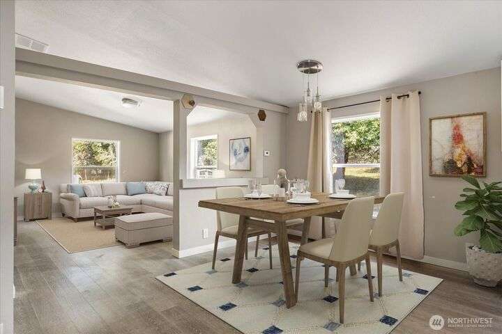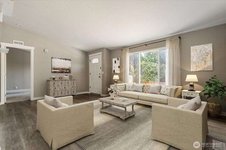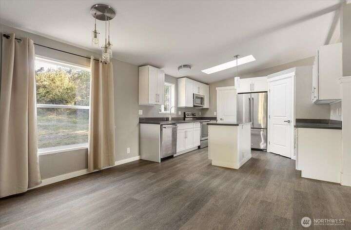 Welcome to this charming 2 bedroom home with a flexible office/den, set on over half an acre with views of the Olympic Mountains and Crockett Lake. Offering +/- 1,507 square feet of bright and open living space, the home features a kitchen with quartz countertops and stainless steel appliances, as well as both a family room and a living room, providing entertaining and everyday comfort. Step outside to pick fresh fruit from your own trees or design the garden you’ve always dreamed of in the fully fenced backyard. Located just minutes from the Port Townsend ferry, Ft Casey State Park, and the charming town of Coupeville, this home offers both tranquility and convenience.