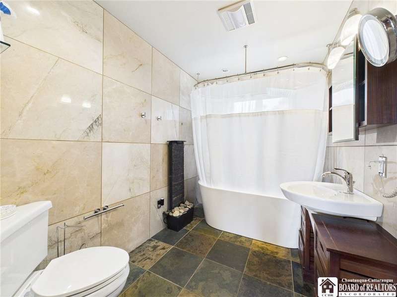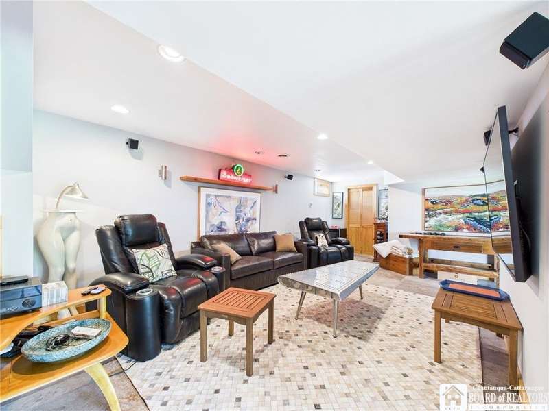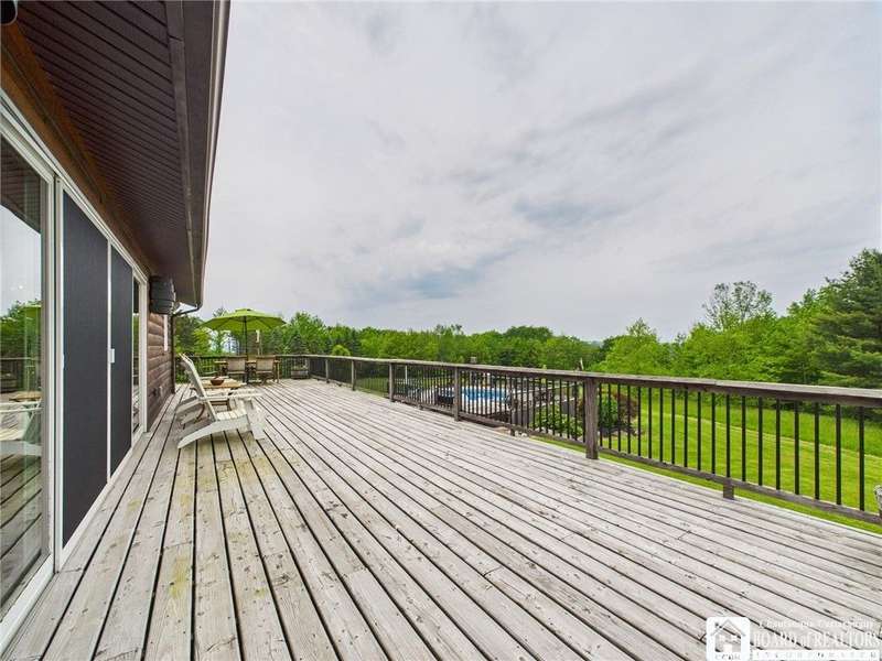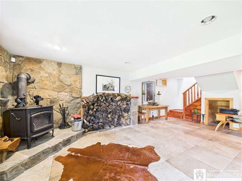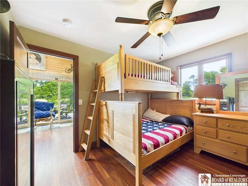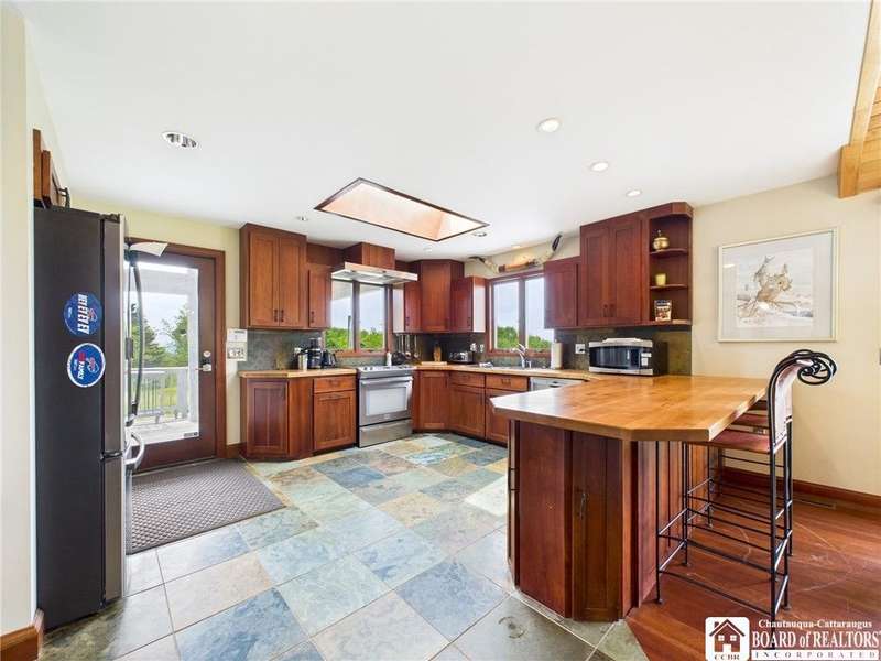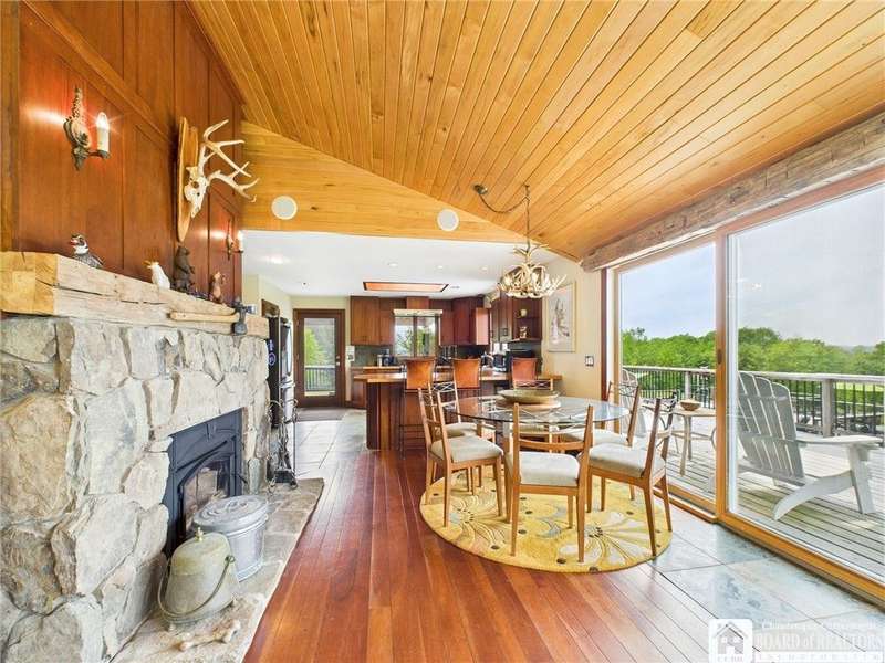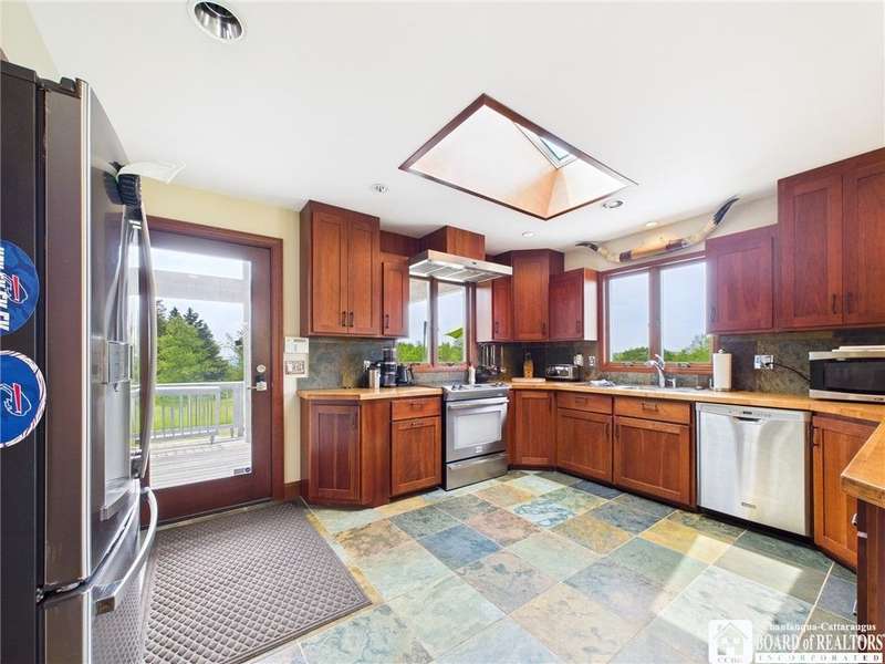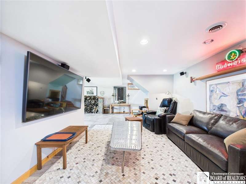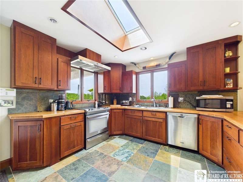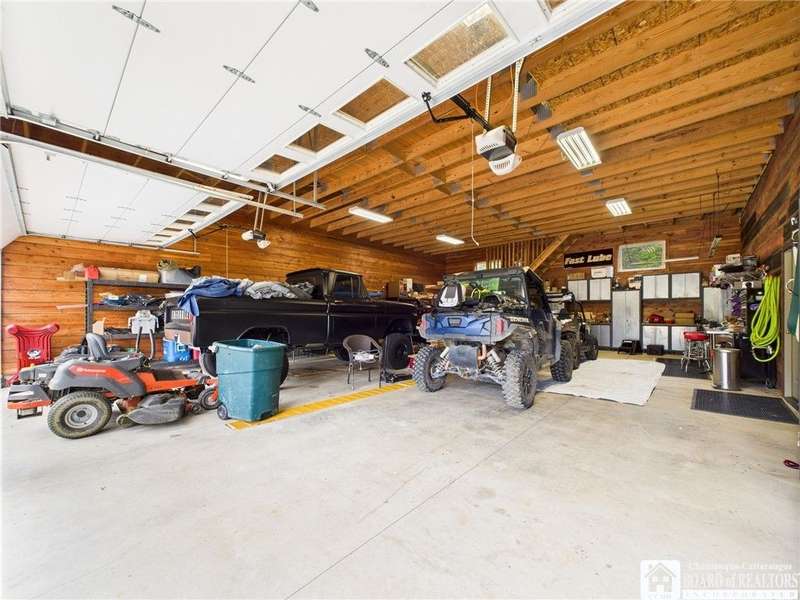 Discover a rare gem just minutes from Ellicottville?77 acres of private, picturesque country living with unbeatable outdoor access. This one-of-a-kind ranch-style property shares its border with the 832-acre Raecher Hill State Forest, offering limitless possibilities for hiking, wildlife watching, and exploring right from your backyard. The main home features two spacious bedrooms and two full bathrooms, with grand cathedral ceilings, hardwood and natural stone floors, a beautifully updated bathroom, and breathtaking views of Holiday Valley that stretch for miles. The basement features heated electric floors, a wood stove, another full bath and even a sauna. With approximately 2,200 square feet of living space?not including the barn or guest apartment?there's room to relax, entertain, and enjoy life in every season. It is about ten minutes from Holiday Valley and bustling downtown Ellicottville. Two private pond enhances the serene setting, creating the perfect spot to unwind. The barn-style garage is a standout feature, offering an upstairs private bar room for entertaining, and a fully appointed garage apartment with heated floors, a private bathroom, and its own cozy living space?ideal for guests or short-term rentals. A second outbuilding provides ample space for storing a tractor, outdoor equipment, or anything else you can dream up. As a bonus, the property also includes a well-maintained camper, perfect for temporary stays, visiting guests, or even your secluded weekend hideaway. The camper has solar panels and water to make it even more convenient. Whether you're seeking a private retreat, a base for adventure, or a flexible property with room to grow, this ranch delivers it all.