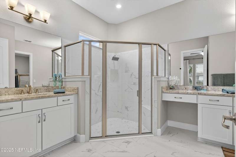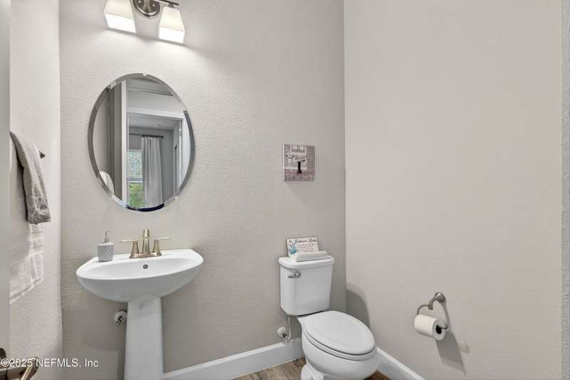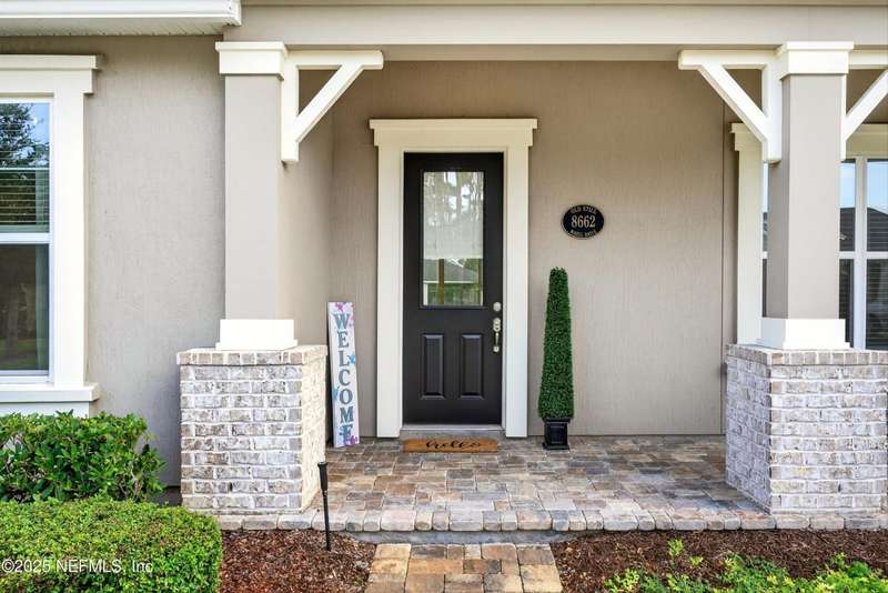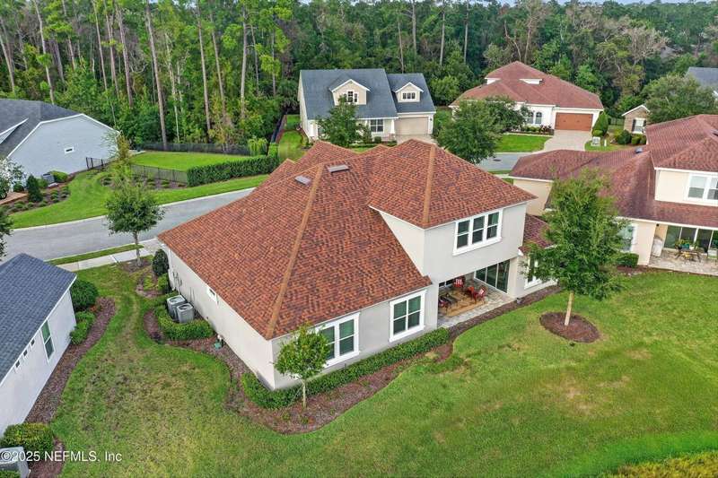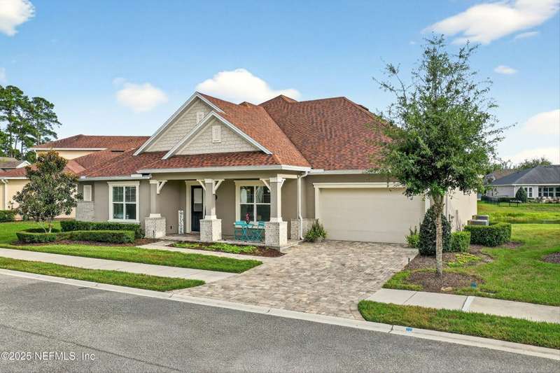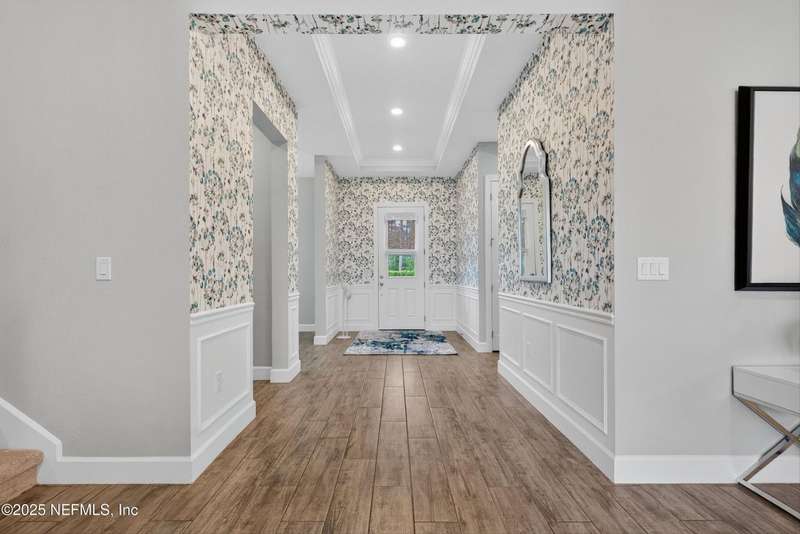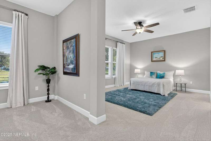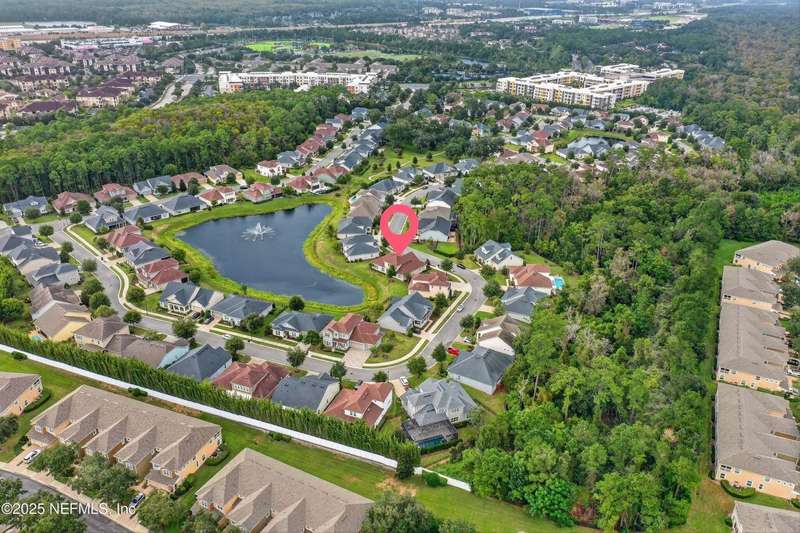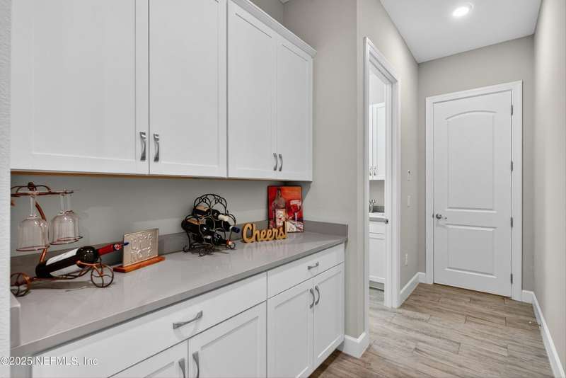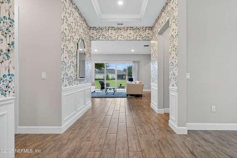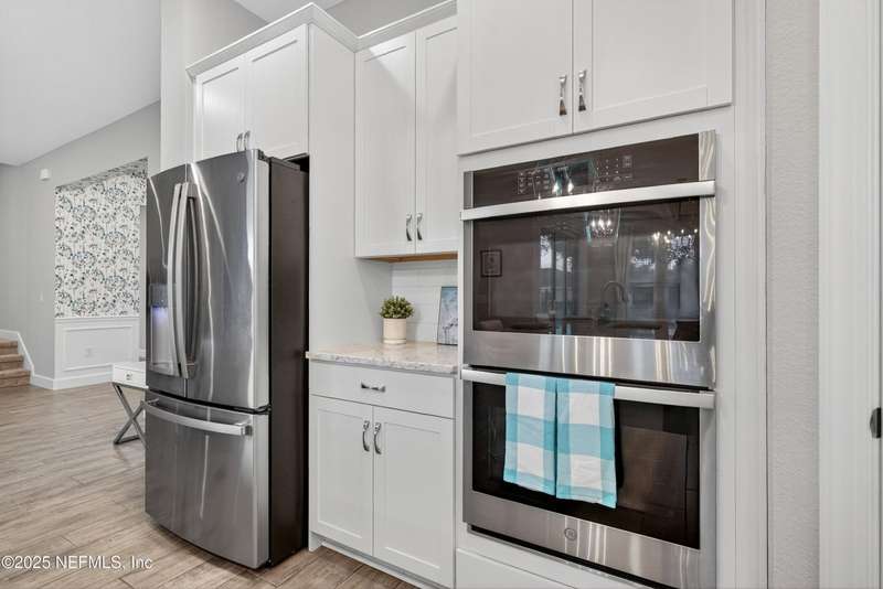 Experience exquisite living in this beautifully appointed 3-bedroom, 3.5-bathroom home with a versatile second level flex space. Perfectly situated in a secure gated community, this home has peaceful water views from the covered patio and blends comfort, sophistication along with low-maintenance living. Step inside through an elegant foyer accented with custom designed wallpaper, where a formal dining room offers the perfect setting for entertaining. At the heart of the home, the gourmet kitchen is a chef's dream-featuring soft-close cabinetry, gleaming quartz countertops, a double oven, and an expansive island illuminated by designer pendant lighting. A casual dining nook with its own statement fixture provides an inviting space for everyday meals. The open-concept living area radiates warmth and style, enhanced by abundant widows providing natural light. Off the garage hallway and foyer, a spacious stop-and-drop zone adds everyday convenience and versatility,