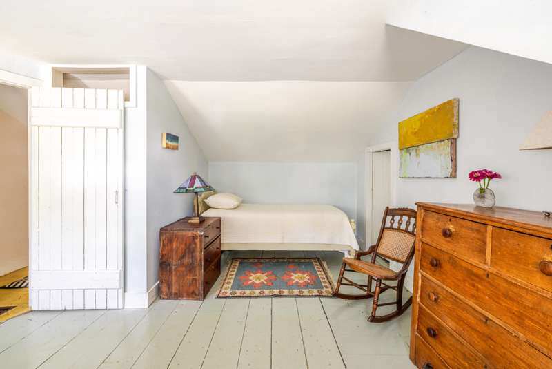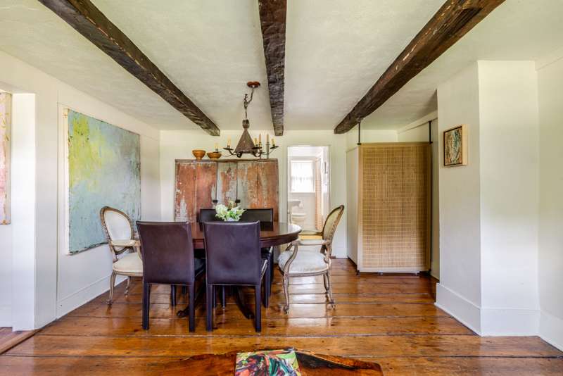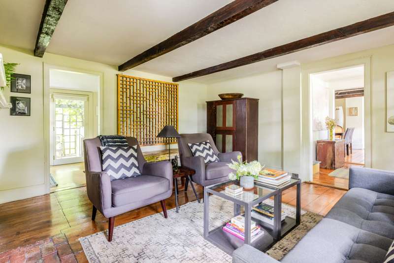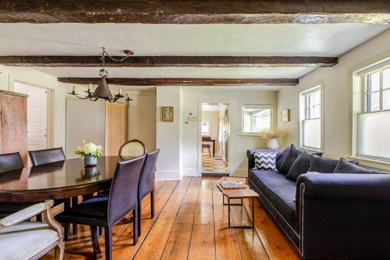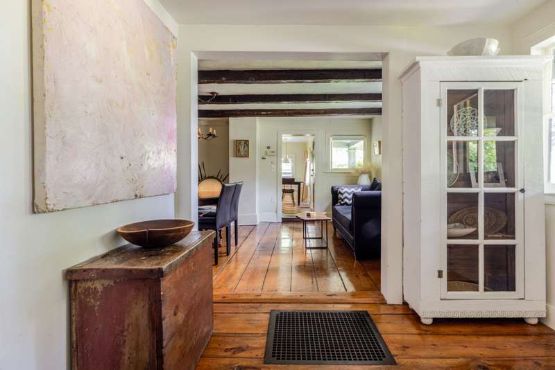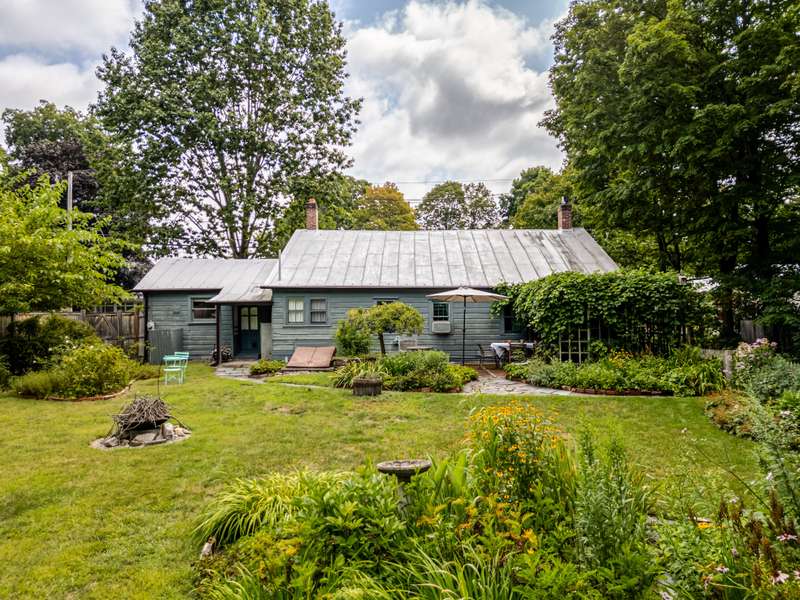 Introducing Woodbine Cottage, a storybook Colonial built circa 1800, filled with old world character and timeless charm. Located in the vibrant hamlet of North Chatham, this well-preserved residence offers three bedrooms, two bathrooms, and a thoughtful balance of period craftsmanship and modern updates. Perennial gardens and a quaint fenced yard enhance the cottage's fairytale quality, making it feel worlds away. Inside, every detail tells a story. Wide-plank wood floors, timber beams, an original mantle, and hand-hewn iron latches speak to the home's early heritage, complemented by thoughtful updatesa refreshed kitchen with new flooring, renovated bathrooms, modern appliances, and updated lightingthat bring ease without compromising its antique charm. The ground-floor primary suite offers comfort and convenience, and sunlit gathering spaces flow naturally for quiet moments and entertaining.Outside, the sweet dormer windows, columns, and metal roof are reminiscent of an English country cottage. Two front porches provide quiet nooks to sit and take in village life, and the fenced backyard is a true retreat. A pergola draped with grapevine and honeysuckle partially shades the brick patio, which overlooks the landscaped lawn and perennial gardens brimming with lilies, anemones, black-eyed Susan, and phlox. The detached two-car garage adds practicality, with space for parking and generous storage for garden tools, bicycles or weekend projects. Set in North Chatham's historic district, the property is surrounded by handsome 18th- and 19th-century homes and a welcoming, conservation-minded community. The hamlet is anchored by the beloved North Chatham Public Library, which hosts cultural programs and fosters a strong sense of connection. Just 10 minutes to Chatham Village, 20 minutes to Albany, and 30 minutes to Hudson, you'll enjoy idyllic small-town living with easy access to restaurants, farmers' markets, cultural attractions, and all the beauty of the Hudson Valley.