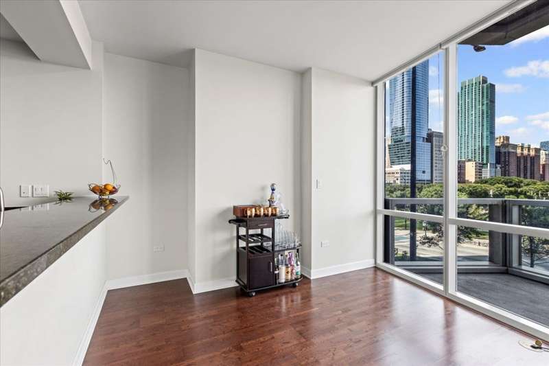 Welcome to Museum Park at its finest! This rarely available 1 bedroom, 1 bathroom condo offers comfortable city living in a luxury, full-amenity South Loop Highrise. The open floor plan is filled with natural light from floor-to-ceiling windows overlooking Grant Park. The spacious and inviting living area includes additional area perfect for home office. The modern kitchen features ample 42 cabinetry, granite countertops, and stainless steel appliances. The private balcony provides a perfect spot to enjoy the Chicago skyline and park views. In-unit laundry adds everyday convenience. Hotel-quality amenities include a 24-hour door staff, fitness center, outdoor pool, sundeck, and party room. One parking space is available for an additional $35,000. Just steps from Grant Park, the lakefront, Museum Campus, public transit, shopping, and dining, this condo combines comfort, style, and an amazing location.