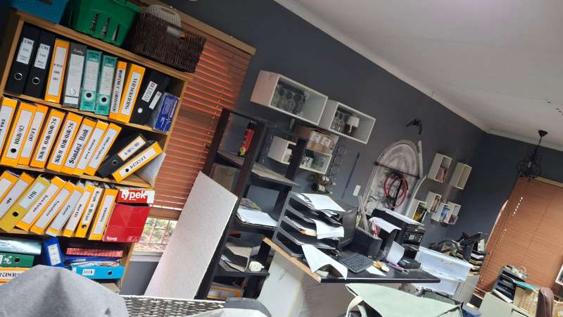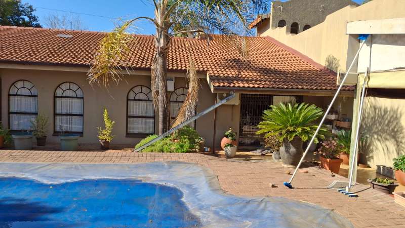 Spacious 5-Bedroom Investment Property with Guest Lodge Potential This versatile 5-bedroom home offers generous living spaces, including a lounge, dining area, TV room, and dedicated office. The main bedroom features an en-suite bathroom, complemented by a full family bathroom with both bath and shower, plus a separate toilet. A modern kitchen caters to family or guest needs. Outside, enjoy a sparkling swimming pool, double garage, carports for two vehicles, a two-room backroom with its own toilet, and 2 Jojo tanks with a sprinkler system. Security is covered with installed cameras. The property’s layout and amenities make it a fantastic investment opportunity — easily convertible into a guest lodge.