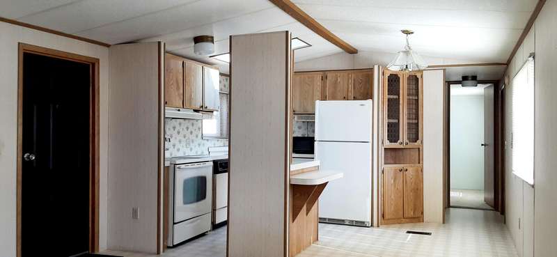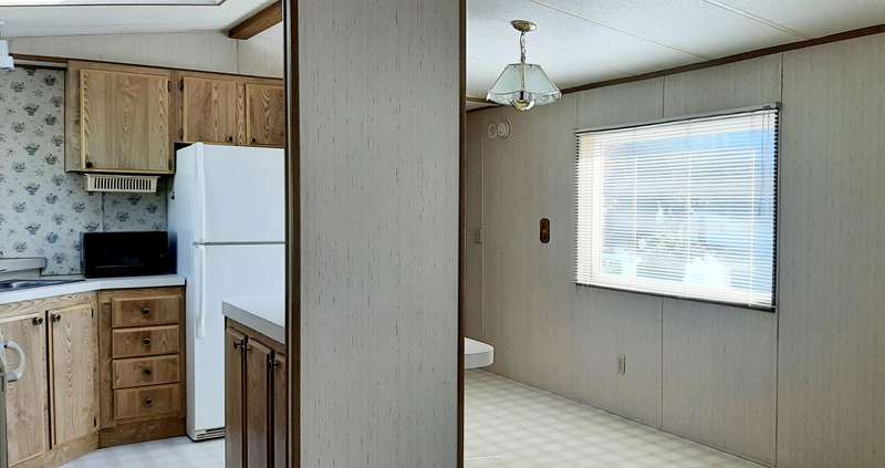 Experience charm and convenience in this three-bedroom, two-bath home, where the primary suite boasts forms. Buyer(s) must have background and credit check and be approved by park management. Space rent for comfortable living. storage unit. The vaulted ceiling in the living room creates an inviting, spacious feel. Move-in ready a walk-in closet. Nestled on a lovely lot with lovely flower beds, it includes a carport and handy outdoor storage.