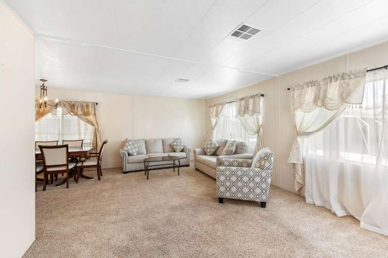 Welcome to your perfect retreat! This charming 2-bedroom, 2-bathroom mobile home is nestled in a peaceful and well-maintained 55+ park, offering comfort, convenience, and a vibrant community lifestyle. Completely turn-key and move-in ready, this home boasts a spacious and light-filled layout with an inviting living area, a bright and cheerful kitchen, and two generously sized bedrooms including a private primary suite. Enjoy the easy-care landscaping, covered parking, and a cozy outdoor space perfect for morning coffee or evening relaxation. Whether you're downsizing or simply ready for stress-free living, this home is a fantastic opportunity to enjoy affordability and comfort in a welcoming senior community. Don't miss your chance to make this beautifully kept home your ownschedule a private tour today!