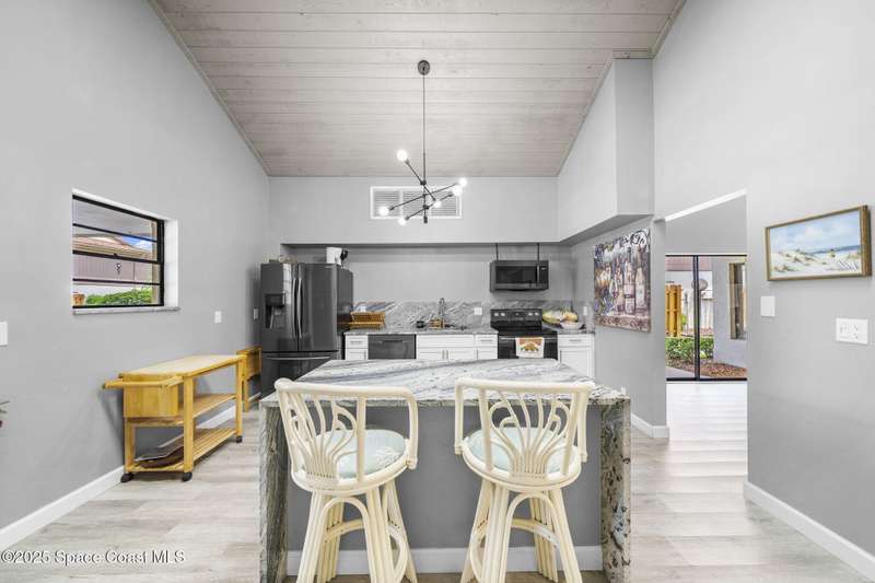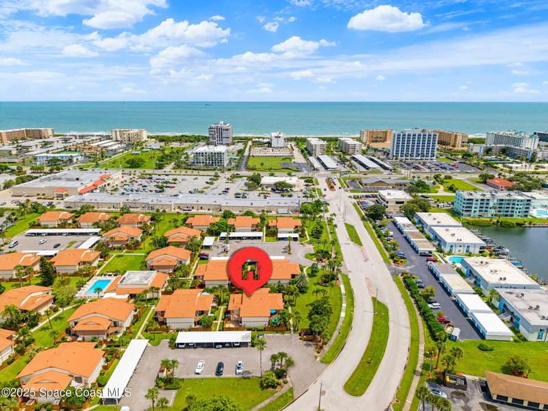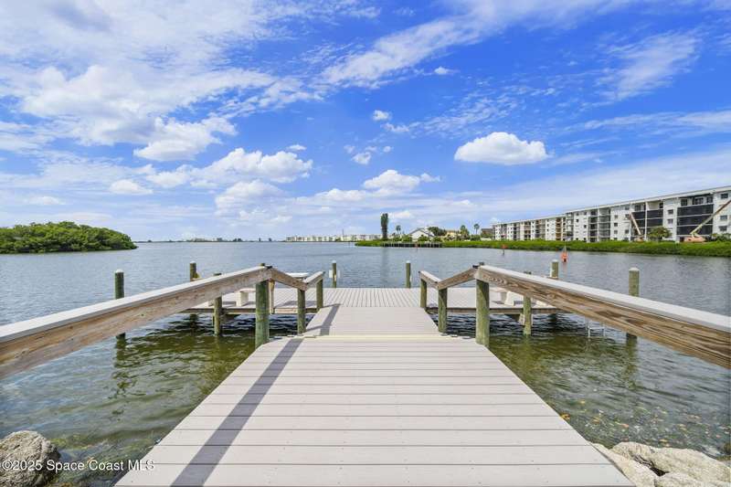 Imagine watching the Christmas Boat Parade right from your community dock! Welcome to this beautifully updated 2 bedroom, 2 bath townhouse in desirable downtown Cocoa Beach! Step inside to discover a modern kitchen featuring cut glass, resin countertops and stainless steel appliances. Tile and wood-look vinyl flooring throughout creates a warm and inviting atmosphere. Both bathrooms have been thoughtfully updated for a fresh, contemporary feel, while a 2022 AC and 2023 water heater ensure comfort and peace of mind. Ea Enjoy the Florida lifestyle by relaxing in your private courtyard or enjoy Banana River access, a private dock, two pools, clubhouse, and convenient kayak storage. Take advantage of the HOA-covered amenities, including roof and structure maintenance, grounds keeping, cable TV, trash, water, and sewer. The community also features a full-time manager and a car wash area. Just a short walk to the beach and close to all that Cocoa Beach has to offer, this home has it all. Just a short walk to the beach and close to shopping, dining, and all that Cocoa Beach has to offer. This townhouse is the perfect blend of comfort, convenience, and coastal living.