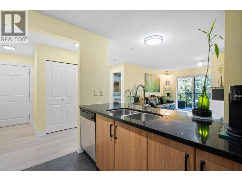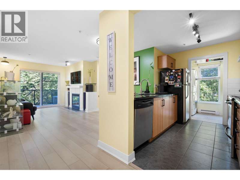 This stunning 2 bed, 2 bath corner home in the heart of Port Moody is perfect for first-time buyers, downsizers or investors. The home features custom cabinetry in the kitchen, laundry room & both bedrooms, giving you style & storage where it matters most. The open-concept kitchen features sleek quartz countertops & stainless steel appliances. Enjoy added functionality with built-in Murphy beds in both bedrooms, perfect for guests or a home office setup. A cozy gas fireplace, spacious covered balcony & ample natural light create a warm, inviting atmosphere year-round. Enjoy in-suite laundry with extra storage, 2 secure parking stall, storage locker. You´re just steps to the SkyTrain, Rocky Point Park, Suter Brook Village, Brewers Row, scenic trails & cafes. (id:58403)