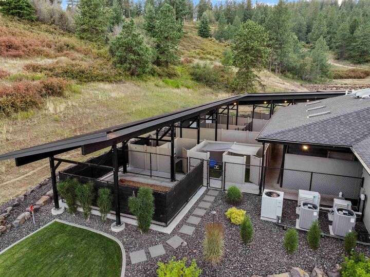 State-of-the-Art Kennel W/Living Quarters & Custom Home on Horse Property. 56 acres featuring a high-end kennel facility with attached luxury apartment & a second home ready for your finishing touches. Perfect for dog breeding, rescue, or rehab—includes air filtration, epoxy floors, interior suites, & secure covered play areas. Upper level offers food prep/storage, 2 offices, cage banks, indoor/outdoor yards, & turfed paddocks. The lower level includes a beautifully finished apartment w/ upscale details. Equestrian potential with space to ride, plus direct access to 1,100 acres of conservation land at Antoine Peak—hike, ride, and explore right from your doorstep. Each structure is thoughtfully placed to maximize 360° views. Incredible opportunity for dog lovers, trainers, or anyone seeking a private retreat w/room to grow. Live, work, & play surrounded by nature. Second residence is framed, roofed, & painted—just bring your vision! Ask your agent for the full amenities list for both properties!