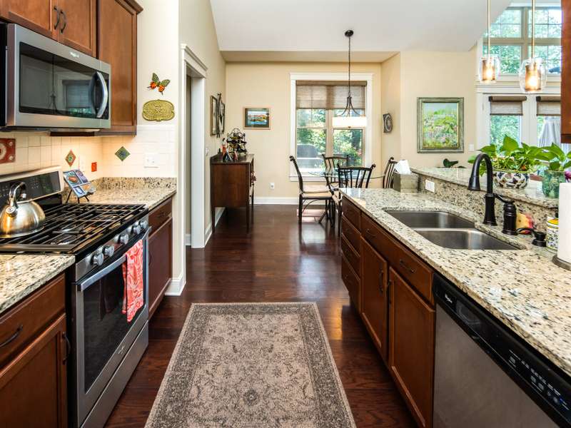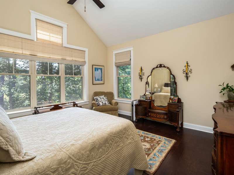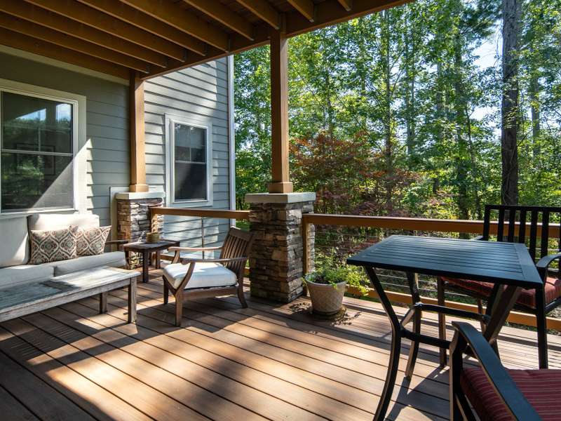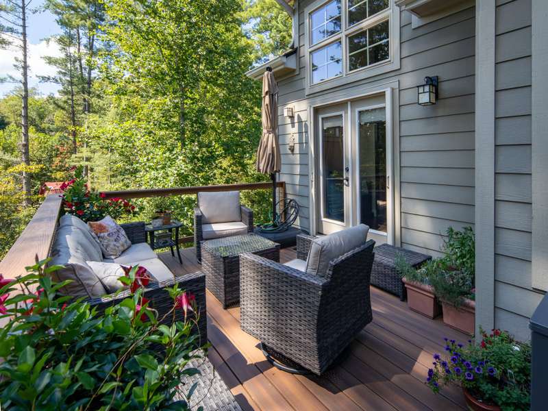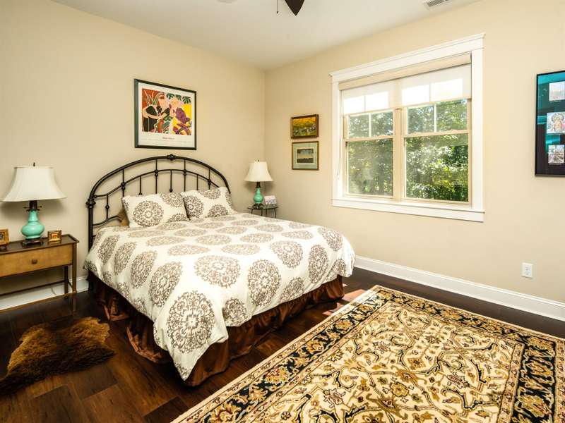 Stunning End-Unit Townhome in Gated Rockfish Cove at Biltmore Lake! This Arts & Crafts home is at the end of a quiet street in a gated community, with unmatched privacy - no neighbors on 3 sides! Step into an open floor plan with vaulted ceilings, a main level primary suite and second bedroom. Unique touches include a living room artistic stone fireplace, custom kitchen backsplash, and natural stone/tile upgrades in the master bath. A spacious lower level includes a large family room, guest suite, and full bath. Enjoy serene outdoor living with a covered front porch and two rear decks, surrounded by natural beauty, where exterior maintenance and landscaping are done for you. You'll have access to over 8 miles of trails, a lake for boating, fishing and swimming, and much more. This could be your perfect mountain home, just a 15-minute drive to Downtown Asheville and the Blue Ridge Parkway!