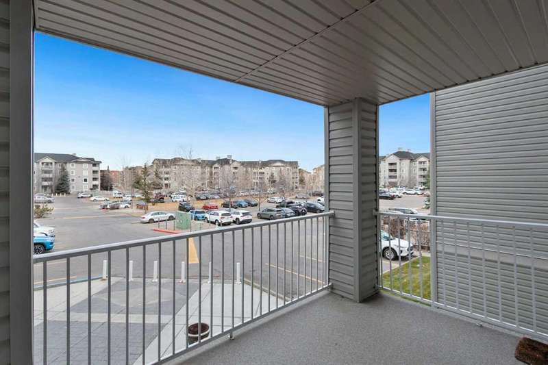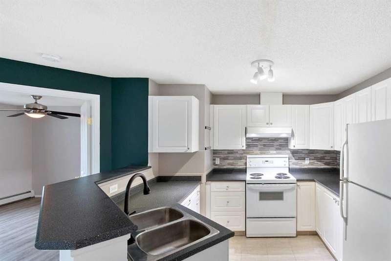 This exceptionally clean condo offers a welcoming layout from the moment you step inside. The entry opens into a spacious, open-concept living room featuring a cozy fireplace and direct access to the balcony, perfect for relaxing. The modern kitchen is bright and functional, complete with white cabinetry, roll-out drawers, generous counter space, and tile flooring. It connects easily to the dining area, which comfortably fits a dining table. The primary bedroom is a great size and includes a walk-in closet and private ensuite. The second bedroom works well for guests, family, or a home office. The main bathroom includes an accessible walk-in style tub/shower conversion designed for ease and safety. Tile flooring runs through the kitchen and bathrooms, with vinyl plank flooring throughout the rest of the home for a clean, updated look. A full laundry room adds everyday convenience, equipped with a full-size washer and dryer plus ample storage. Recent updates include newer windows and a newer patio door, and the assigned parking stall is located right at the front entrance for quick access. Set in the heart of Airdrie, this condo is close to shops, pathways, and parks giving you a comfortable low-maintenance living in a prime area of the city.