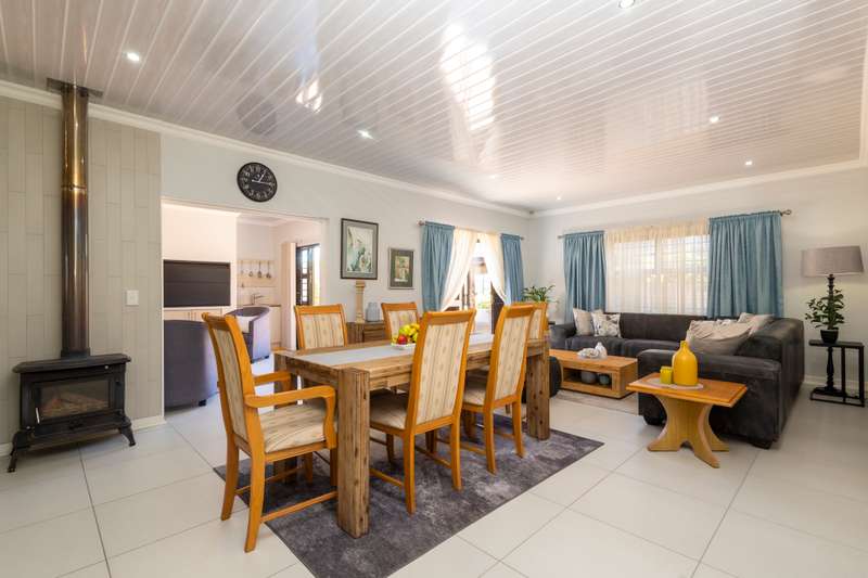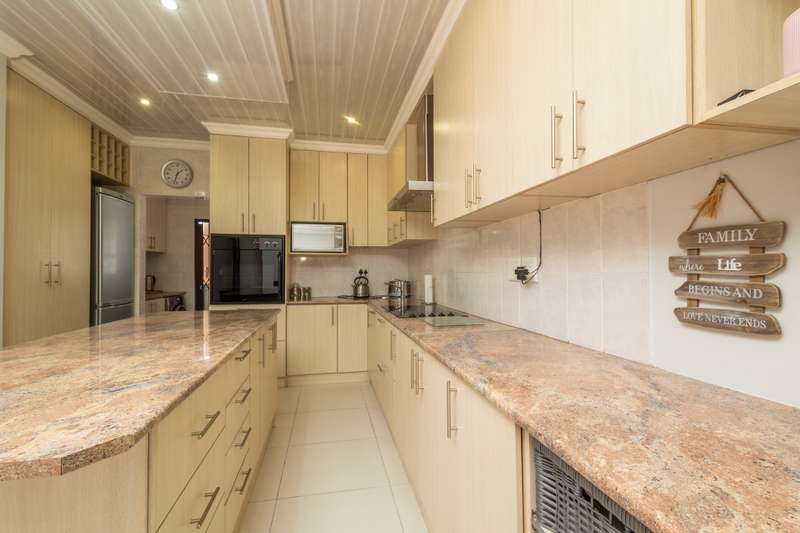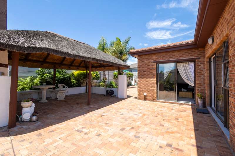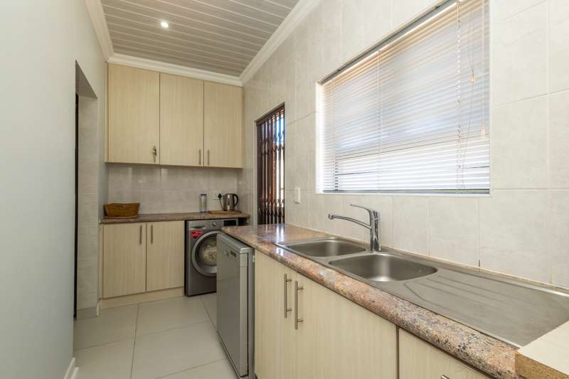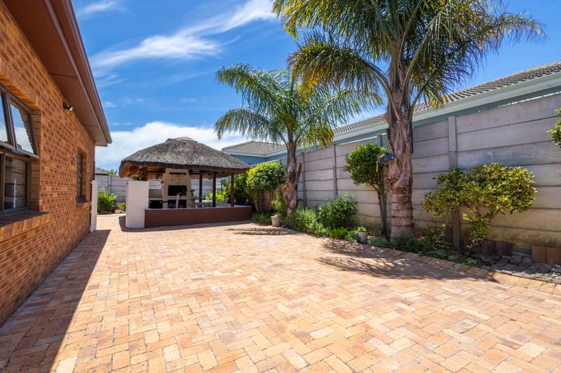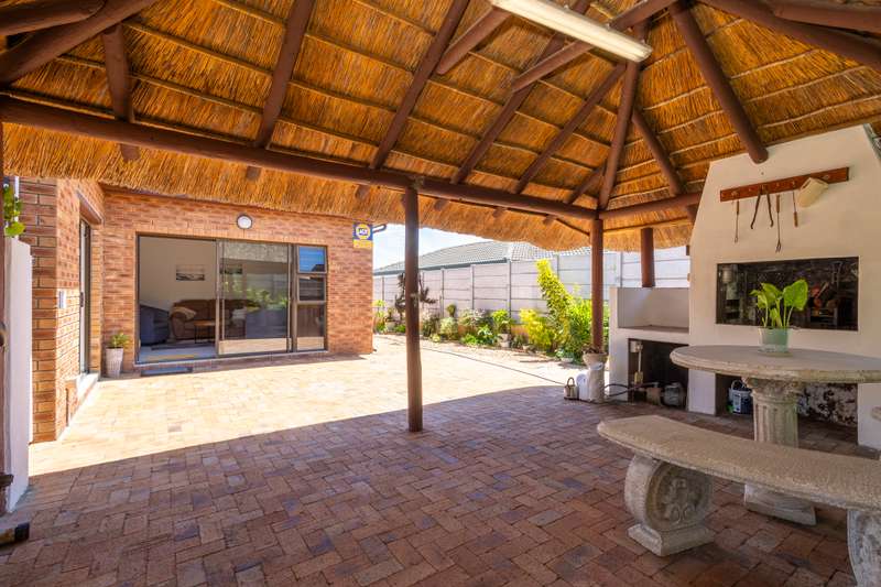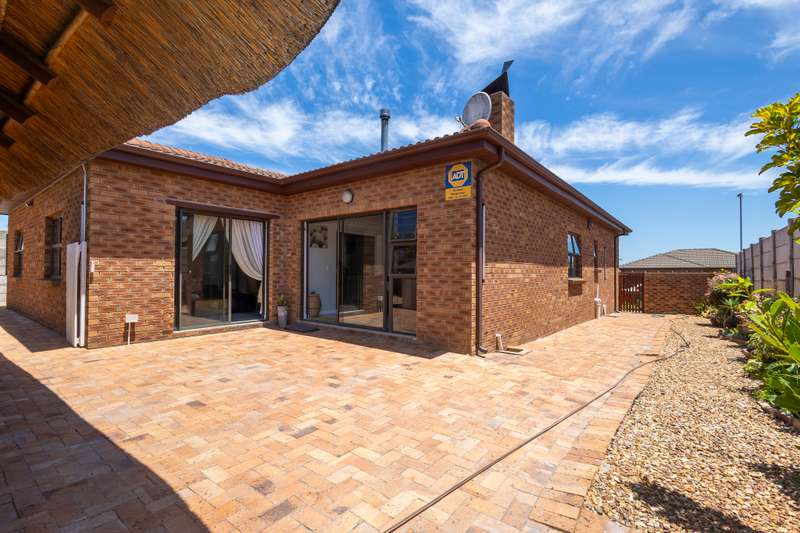 If you are looking for security, space, low maintenance and prime location, then this one is for you! Open plan kitchen fully fitted with BIC, oven, hob and extractor fan. Scullery fitted with BIC’s and plumbing points, interleading to a double automated garage, bigger than your average double garage with BIC’s. Open plan dining and lounge area, with a beautiful fireplace; perfect for winter nights. The open plan kitchen, dining and lounge area flows perfectly into the indoor braai room with a built in braai. Sliding doors giving you access from the braai area which consists of a built in braai and undercover lapa area, perfect for outdoor entertainment. Consists of 3 spacious bedrooms, fully fitted with BIC’s. The main bedroom has an en-suite with double shower, basin and toilet, family bathroom with toilet, basin, shower and bath. Parking space for 2 cars behind automated main gate and additional parking space for 3 cars behind main gate. This beautiful home is safe and secure fitted with an alarm system, burglar bars and safety gates. If you are looking for a spacious family home neat as a pin then this one is for you! Viewings by appointment only.