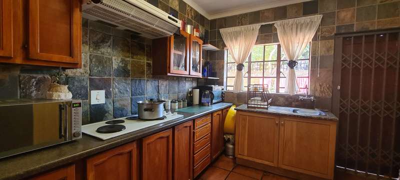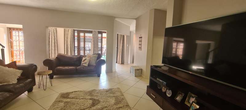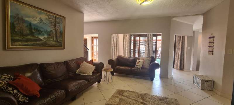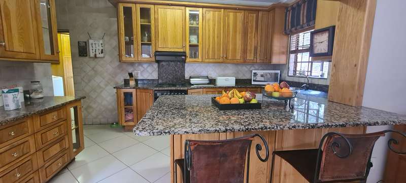 For the large family, this home offers you 5 bedrooms 3 bathrooms, spacious living areas, study, massive built in braai and bar., Kitchen with solid wooden units. Hob with under counter oven. Granite tops, breakfast nook open into dining room. Large separate laundry. Plus a 2 bedroom flat with bathroom, lounge, dining and kitchen. Plus own outside braai area enclosed pool , massive entertainment room. 4 extra large garages. What a lot you get. Call to view this spacious home.