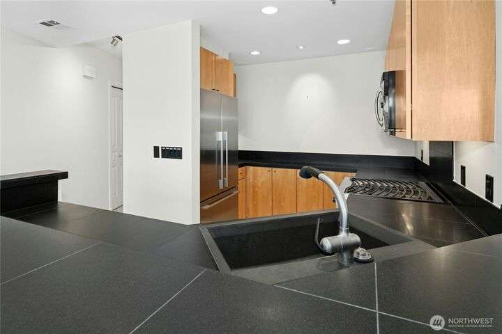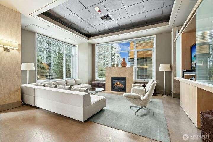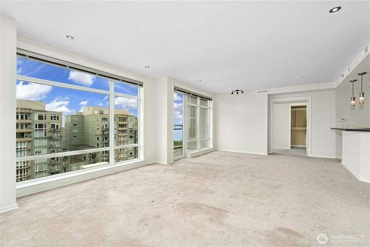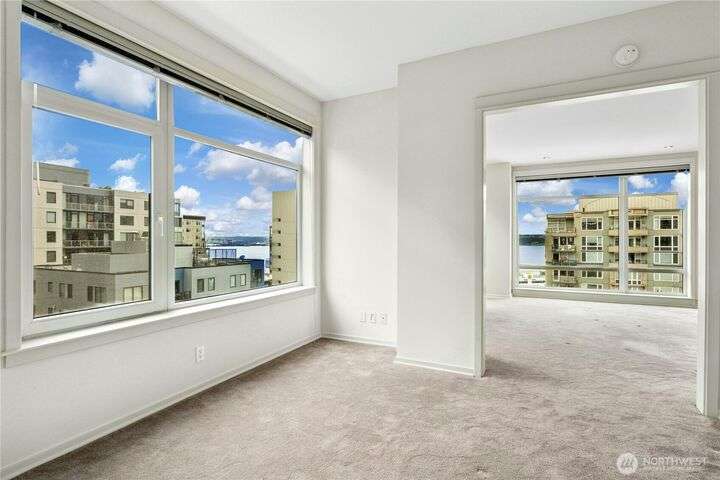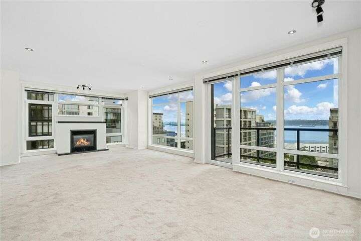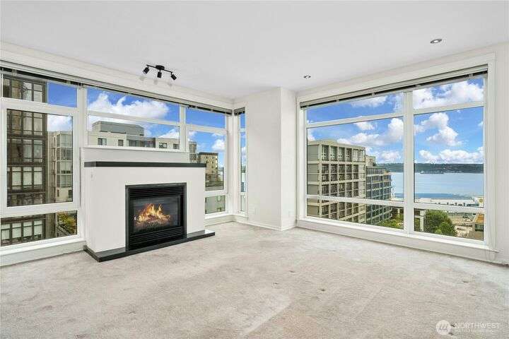 Available now! A/C! Stunning light filled 2 bed, 1.75 bath in the heart of Belltown with outstanding view of the water, Olympic Mountains, West Seattle and Olympic Sculpture Park. West facing unit with floor to ceiling windows, gas fireplace and a large dining room. Updated chef’s kitchen features SS appliances and Gas stovetop. 5 piece bath with soaking tub and walk-in closet. 24hr Concierge with great amenities. 2 parking spots.