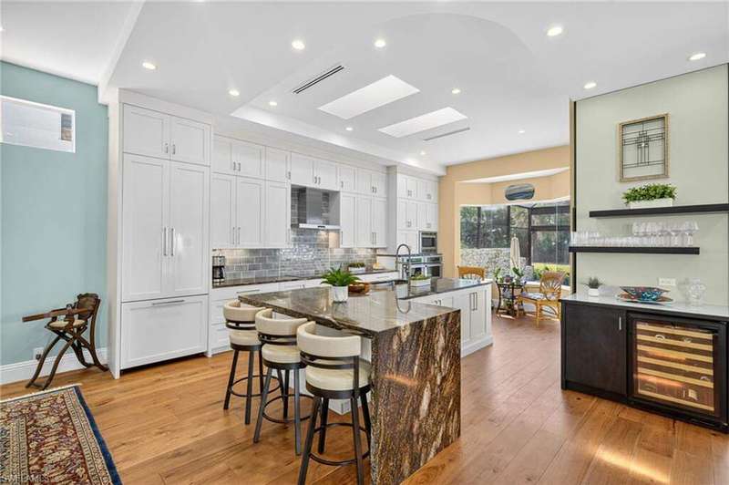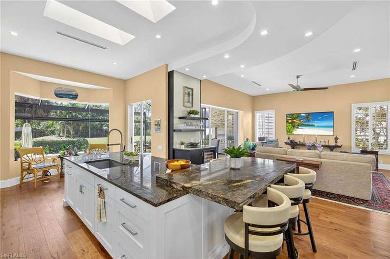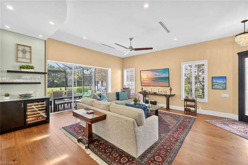 ** Full golf membership to Windstar Club eligibility ** Welcome to 3876 Clipper Cove Drive in the desirable Clipper Clove enclave of Windstar on Naples Bay. This 3 Bedroom, 3 full bathroom home has been thoughtfully redesigned and renovated by the current owners ideal for today's Naples lifestyle. Enter into an open-concept living area with soaring ceilings and gorgeous wide plank hardwood flooring. Spacious living room with built-in bar area and dining area ideal for entertaining. Wall of glass in the rear opens out to outdoor living area seamlessly blending indoor/outdoor living. Saltwater pool and spa plus built-in outdoor grill. Lovely southwestern vistas of the 10th fairway. A true chef's eat-in kitchen featuring Thermador appliances including paneled refrigerator/freezer, induction cooktop, double wall ovens, oversized island and custom shaker cabinetry. Master suite oasis with spacious bedroom overlooking tranquil courtyard. Large walk-in closet with custom built-ins. Spa-like marble bathroom including walk-in shower, double vanity and separate water closet. 2 guest suites plus convenient laundry room with great storage. 2-car attached garage. Windstar on Naples Bay is the only gated golf community with Tom Fazio designed 18-hole golf course that offers direct bay access, a private beach plus dock on Keewaydin Island with boat shuttle plus a full service 73-slip deep water marina. Newly renovated clubhouse (separate membership) with multiple dining areas with stunning views of Naples Bay and Port Royal and Royal Harbor, billiards room, 6 Har-Tru tennis courts, bocce courts and a state of the art fitness center slated for 2025. Preferred location just a short drive via car, bike or golf cart to downtown's 5th Avenue known worldwide for its fine dining, shopping and beaches. Situated in the vibrant Bayshore Arts District, Windstar is walkable to Naples Botanical Garden and Naples Pickleball Center home of the pickleball US Open. Easy access to I-75, Naples and Fort Myers airports.
