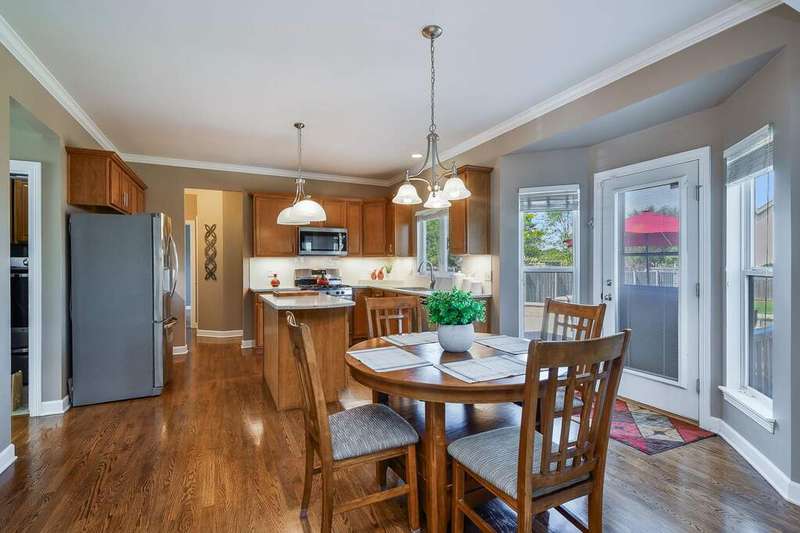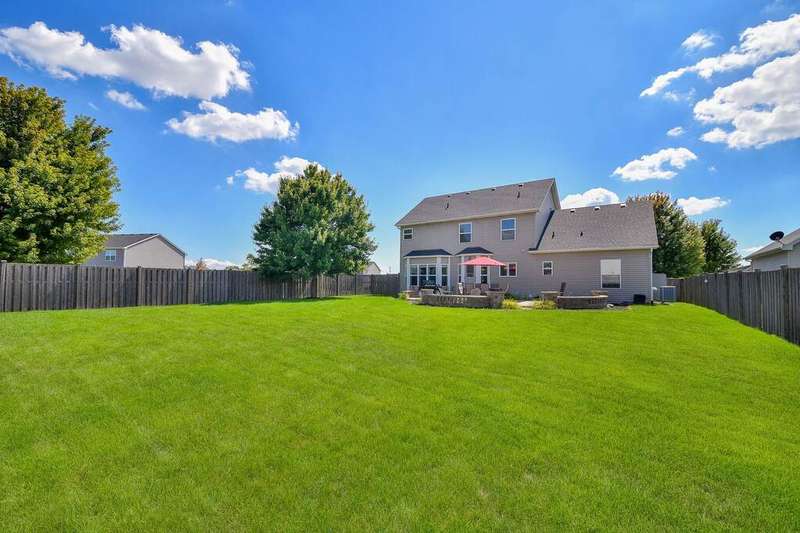 WELCOME HOME to this 4-bedroom, FOUR- full-bath home that offers a rare main-level flex room with adjacent full bath - easily converted into a 5th bedroom with the addition of a closet or wardrobe (so could work as an in-law or nanny arrangement.) Situated on a generous .32-acre fully fenced lot, the backyard is a private oasis featuring a large brick paver patio, wood-burning firepit, and charming half-wall - perfect for entertaining or enjoying your morning cup of coffee or evening glass of wine. The heart of the home is the stunning open-concept kitchen and family room, complete with stainless steel appliances, quartz countertops, custom subway tile backsplash, under-cabinet lighting, a large island, walk-in pantry, and casual dining area. 9-foot ceilings on the main level enhance the spacious feel, while Levelor blinds throughout offer both style and privacy. Downstairs, enjoy a fully finished basement with a full bath, kitchenette space, large rec room, and ample storage - ideal for guests, in-laws, or game nights. Nearly 3300SF of living space with the full, finished basement! Some of the improvements include: Backyard shed (2024), asphalt shingle roof with transferable warranty, and new Maytag front-load washer and dryer on pedestals (2023), new landscaping in front and portion of back (2023), backsplash and under cabinet lighting (2023), Whirlpool stainless microwave (2022), hot water heater replaced (2020), stainless refrigerator, stove, and dishwasher by Kenmore (2019), quartz countertops and undermount sink (2018), painted and added all new hardwood flooring in foyer, kitchen, front and back hallways (2018), 6-foot fence installed in backyard (2015.) Located in th Yorkville school district, this move-in ready home checks all the boxes - space, updates, and versatility. Don't miss your chance to own this exceptional property!