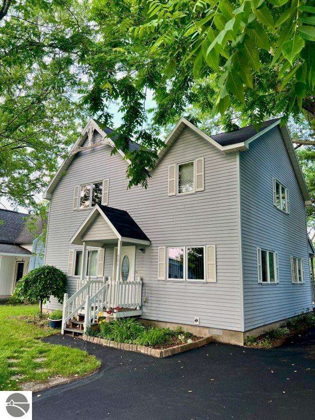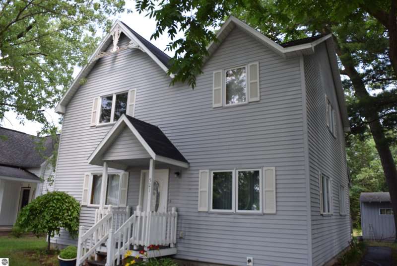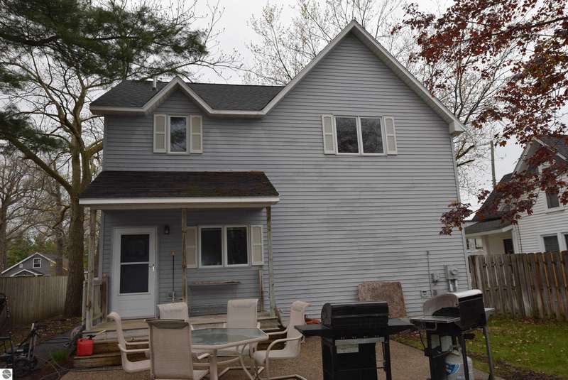 This charming 3 to 4 bedroom home features 2 full bathrooms and is conveniently located within a short walk of beaches, schools, a college, and shopping areas. It is just a block away from Traverse City's vibrant social district. The property boasts a new roof, updated flooring, modern mechanical systems, and stainless steel appliances. You'll find a spacious storage shed and a generously sized fenced yard. The rooms are large, with the option for a main level bedroom or family room (closet needed). It includes a 5-foot crawl space with concrete floors ideal for storage and mechanicals. Central air conditioning ensures comfort on warm days. The interior showcases soft carpeting, and a new washer and dryer are conveniently located on the main level. The large patio area is perfect for grilling and entertaining guests.
