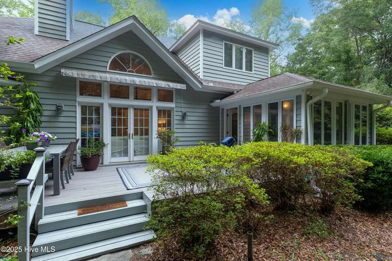 Nestled within the Creekside community of Porters Neck Plantation, this beautifully maintained coastal residence, combines timeless design with a tranquil, natural setting. Featuring 3 bedrooms, 2.5 baths, and a spacious bonus room, that may serve as a fourth bedroom, the home is thoughtfully positioned on a wooded lot beneath a canopy of mature trees, offering unmatched privacy and a true sense of retreat. Inside, a semi-open floor plan is anchored by rich hardwood flooring and a harmonious flow between the main living spaces. The kitchen and living room are the heart of the home-ideal for both relaxed everyday living and effortless entertaining, while the light filled formal dining room provides an elegant space for gatherings. The generous primary suite overlooks the beautifully landscaped backyard and offers a walk-in closet and a spa-inspired en suite bath complete with dual sinks, a soaking tub, and a tiled walk-in shower. At the rear of the home, a cozy sunroom opens to a brand new composite deck with a retractable awning--perfect for indoor/outdoor living throughout the seasons. The fully fenced backyard is a gardener's paradise, offering lush plantings, privacy, and room to cultivate or unwind. Additional highlights include a dedicated home office with beautiful built ins, an oversized 2 car garage with a small workshop space, reverse osmosis and water softener systems, and a Generac generator for peace of mind. Enjoy deeded access to the Intracoastal Waterway featuring a boat ramp, a lovely picnic area and dock! Residents of Creekside also have the option to join Porters Neck Country Club, and enjoy premier amenities such as tennis, golf, pickleball, a state-of-the-art fitness center, two beautiful pools, and a vibrant social calendar! Also, conveniently located near grocery stores, popular local restaurants, shopping, and medical facilities. Schedule your showing today and discover the best place to call home!