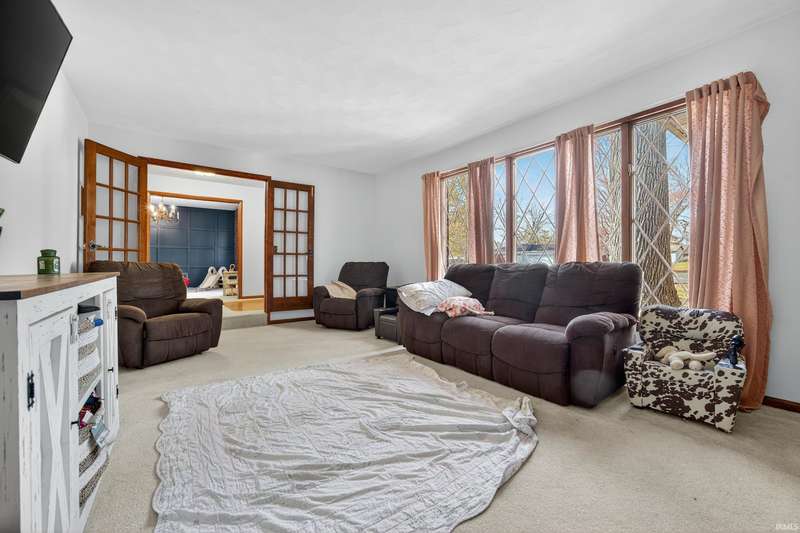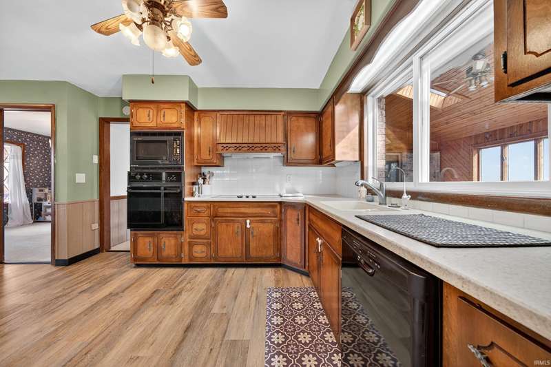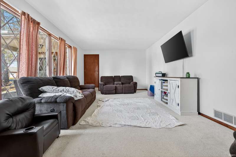 Sprawling ranch located in Pleasant homes in the heart of Sweetser. Home features three bedrooms, two full baths and two half baths with several living spaces. Living room has a gas log fireplace and opens up into the enclosed sunroom that overlooks the backyard. Primary bedroom features an en-suite and separate vanity area. Flex space with its own entrance could be used as a home office, crafting space, in-laws quarters, extra living space and so much more! Updates include on demand water heater (2024) and newer flooring in the kitchen, laundry and bathrooms.