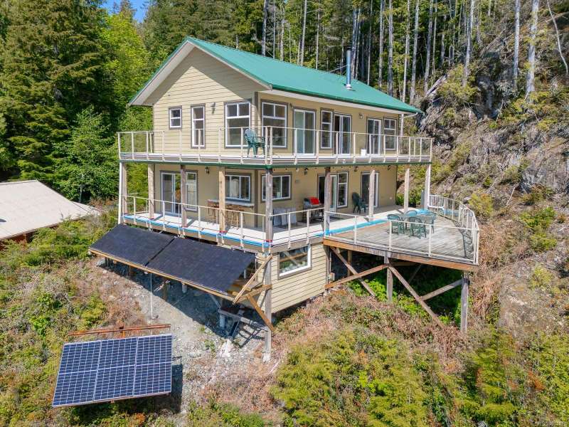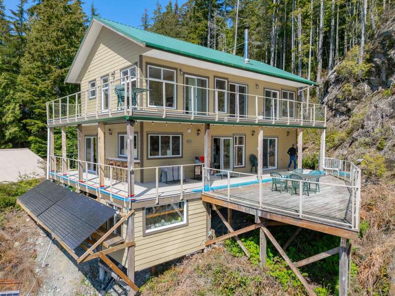 West Coast Getaway at Haggards Cove! Escape to this stunning waterfront community with a custom-built 4-bed, 3-bath home at the entrance to the Alberni Inlet and Barkley Sound. Enjoy world-class fishing, kayaking, and diving with 2 private boat slips and extra slips available for purchase. Quality shines with 2 primary suites with ensuites, 14' open-beam ceilings, floor-to-ceiling windows, and a spacious open-concept main floor that flows to a large view deck. Built for off-grid comfort with a 100 AMP solar power system with battery & generator backup, hardiplank exterior, metal roof, on-demand hot water, and wood stove. Designed for year-round use with bunk rooms for extra guests, laundry room with washer/dryer, and vinyl & slate flooring on main, cork upstairs. Located in a gated marina community with incredible privacy and nature at your doorstep—this is the ultimate West Coast retreat. Don't miss your chance to own a piece of Vancouver Island paradise!