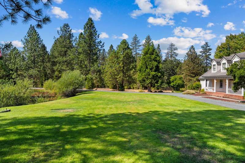 Your Southern Oregon retreat awaits! Located in the highly desirable Colonial Valley, this stunning 4 bedroom, 2.5 bath home offers 2,620 sq ft of thoughtfully designed living space on 5.28 flat, usable acres at the end of a quiet cul de sac. The property features a serene pond and the gentle flow of Louse Creek, creating a peaceful and private setting to enjoy the natural beauty of the grounds. Inside, enjoy a chef's kitchen with Wolf range, spacious living room, hardwood floors, cozy fireplaces, oversized laundry room, and a newer heat pump. Outside, a tile roof, newer trex deck, and brand new well pump complement the large detached garage/barn with oversized doors and a separate room plumbed for water, ideal for guests, creative space, or potential multifamily use. Opportunities like this are rare! Experience the lifestyle, privacy, and beauty of Serenity Ln.