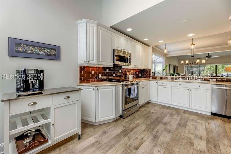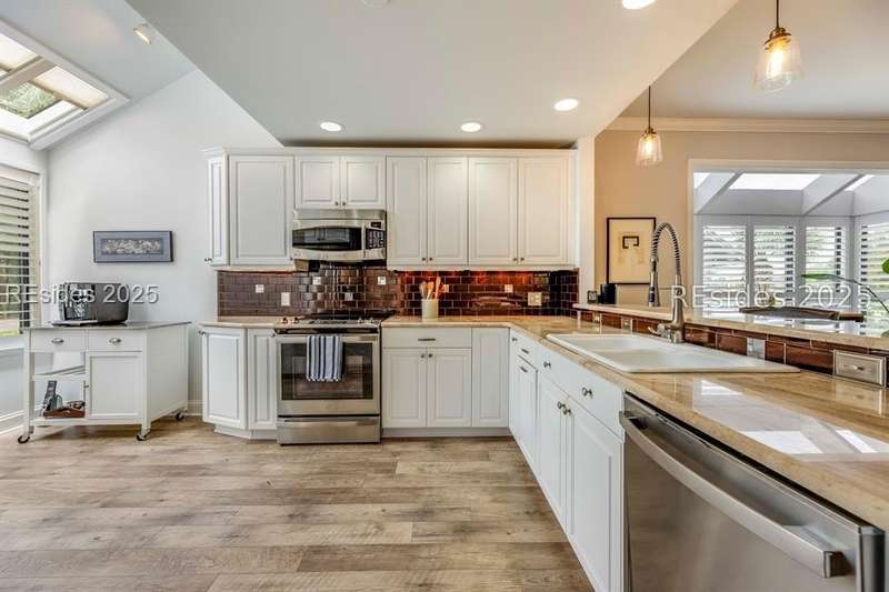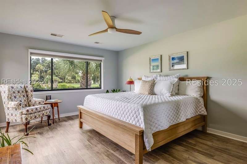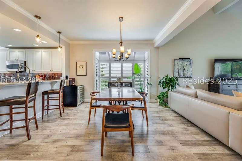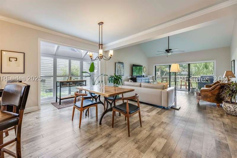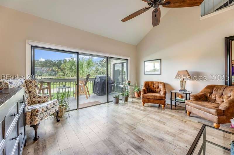It's all about the view, and this villa delivers in spades! Enjoy sweeping golf and 11-mile lagoon views that stretch as far as the eye can see. This nicely updated 3 BR end-unit Inverness Villa is conveniently located near the entrance. 991 Inverness is a converted 3 BR, giving the living area soaring ceilings and an open, airy volume rarely found in traditional 3 BR layouts - truly unique. Inverness also offers its own pool and tennis courts. Inside, you'll find light granite countertops, stainless steel appliances, custom cabinetry, and a large breakfast bar. Recent upgrades include replaced windows, plantation shutters, new LVP flooring in both downstairs bedrooms, a new stove/oven, new ceiling fans, new lighting over the kitchen island, fresh pavers in the front entry and service yard, a new washer and dryer, and remote-control blinds in the living and primary bedroom. Walk to the beach or call the Dunes Buggy for free rides anywhere in the resort. Perfect rental, second home or full-time residence. This is a must-see!