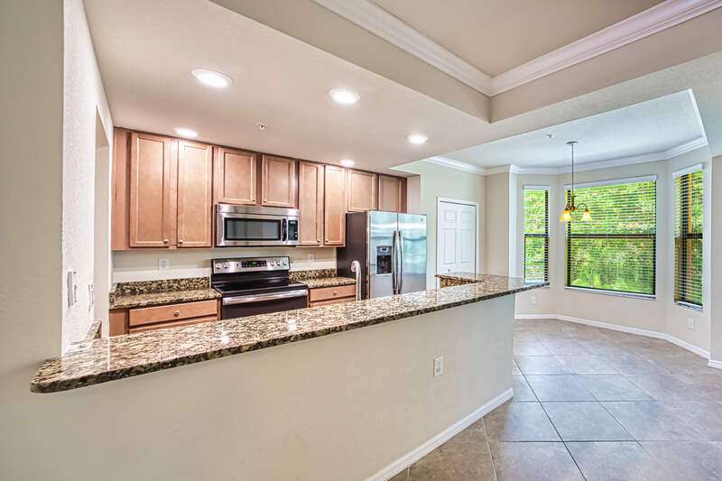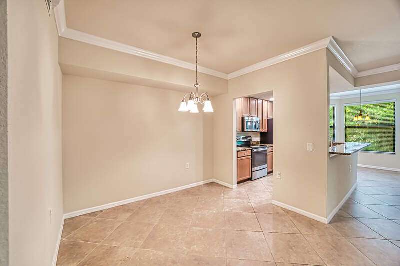 Welcome Home to Palmetto Cove. This spacious and inviting 2 bedroom + den, 2 bathroom condo is located on the ground floor and comes with its own single-car garage-right out front for easy access, plus a side door and opener. Before you even step inside, there's a large screened front lanai-perfect for a comfy seating area to enjoy your morning coffee or unwind in the evening. Inside, the kitchen is a standout with granite countertops, stainless steel appliances, and a cozy bay-window breakfast nook with peaceful preserve views. There's also a formal dining area and a bright, open living space that leads to a private den with double doors-great for a home office or extra guest room. The primary bedroom is spacious and features two walk-in closets, dual vanities, and a walk-in shower. From the living area, sliding glass doors take you out to a second screened lanai, where you can kick back and enjoy the quiet preserve and maybe catch a glimpse of some wildlife. You'll also love the impact windows, plus a full-size washer and dryer right in the unit. Palmetto Cove is a gated community with a clubhouse, heated pool, and spa-and the location is super convenient. You're close to beaches, shopping, dining, golf, medical centers, RSW Airport, and even spring training baseball. This one checks all the boxes-don't miss it!