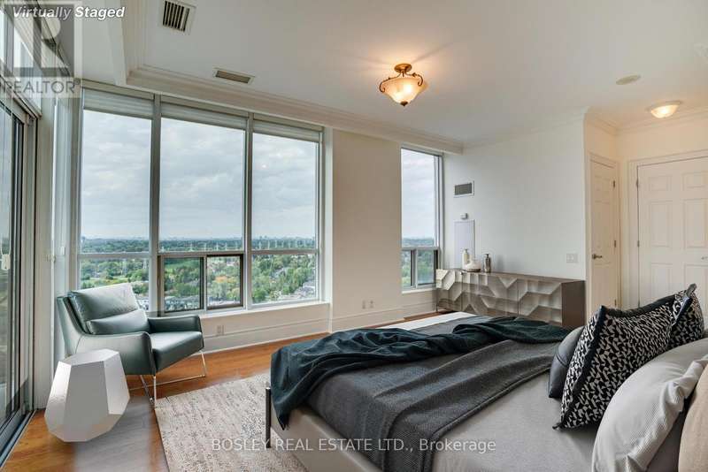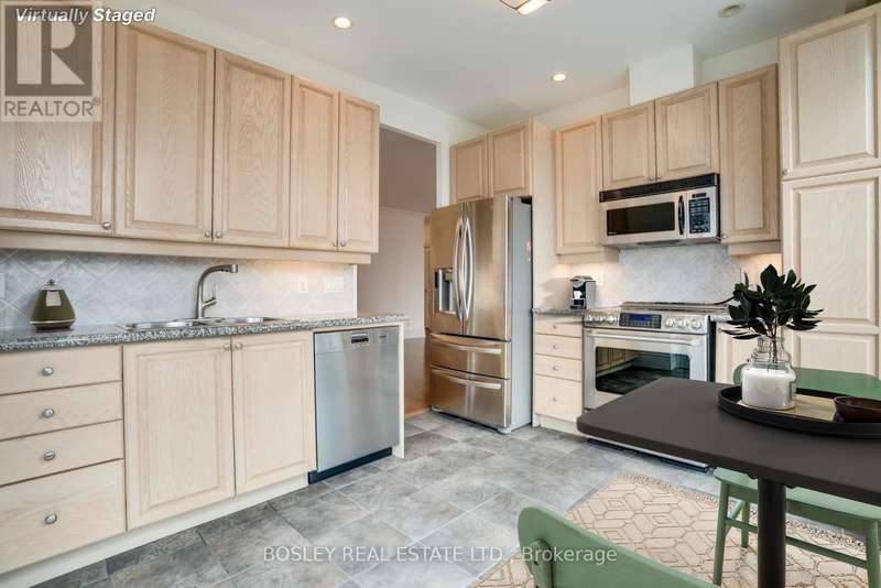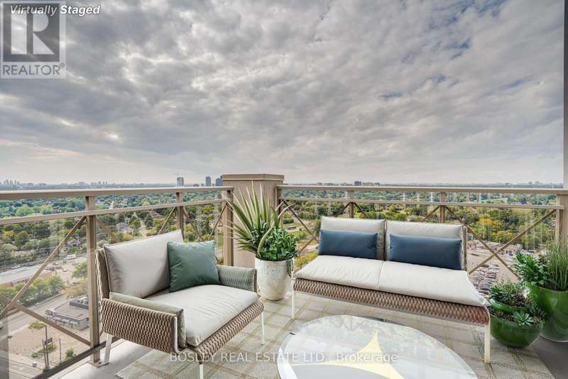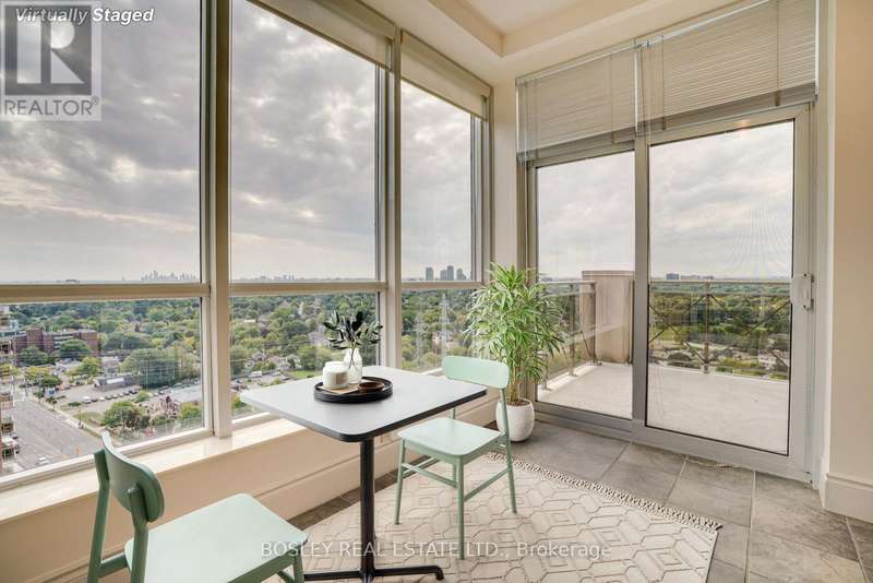 Live high in the sky in this 2 bedroom + den, 2 bathroom, corner penthouse suite. A unit that spans 1327 square feet and has been meticulously and lovingly cared for. You feel it the moment you step in the door. In pristine, original condition, its been so well maintained that it feels both classic and inviting - a rare opportunity to move right in or update to your taste. The thoughtful layout includes a large open living/dining area and a bright kitchen with walk-out to a spacious balcony, complete with gas BBQ hookup for all your grilling needs. The den, with sliding glass doors, is the perfect home office, cozy reading nook or even a small bedroom. Both bedrooms are generously sized, with the primary suite offering a walk-in closet, a 5-piece ensuite, and its own balcony retreat. A second balcony off the second bedroom adds even more outdoor space. With TWO parking spots and TWO lockers, plus access to full building amenities (pool, gym, party room, golf simulator etc.), the practical perks are all here. Facing west, the suite captures evening light and wide open views. Steps to GO, TTC, Farm Boy, plenty of dining/shopping options + Sherway Gardens, Islington Golf Club and major highways all nearby. This penthouse offers comfort, convenience and enduring value. *OTHER* Maintenance includes all utilities. Has been virtually staged. (id:7434)