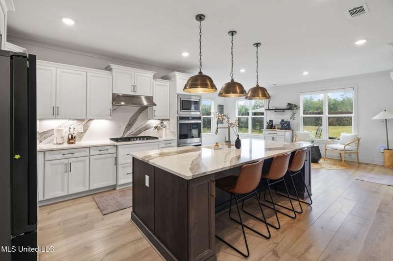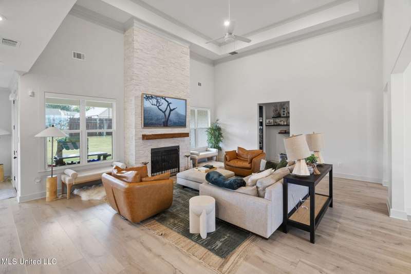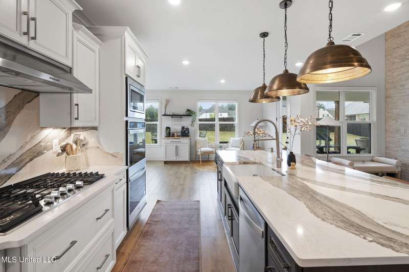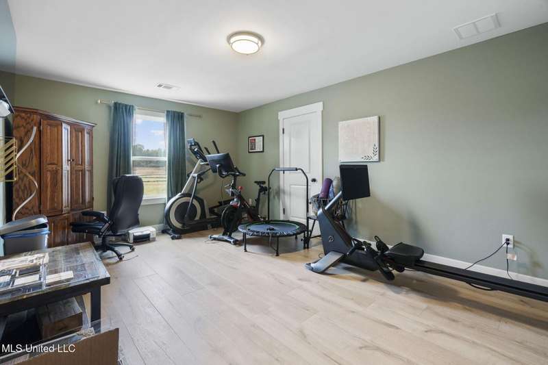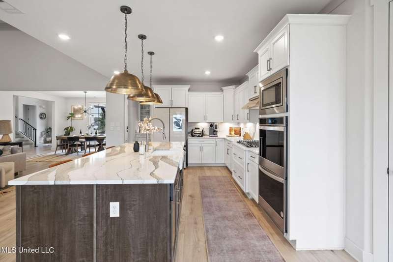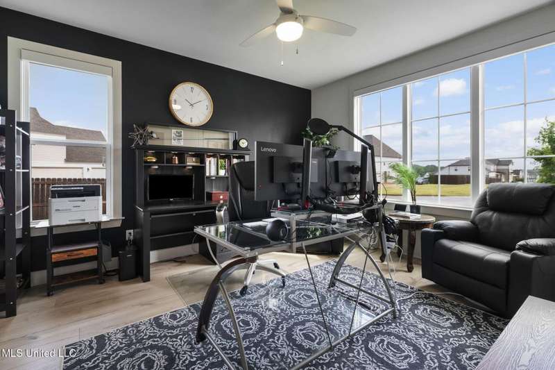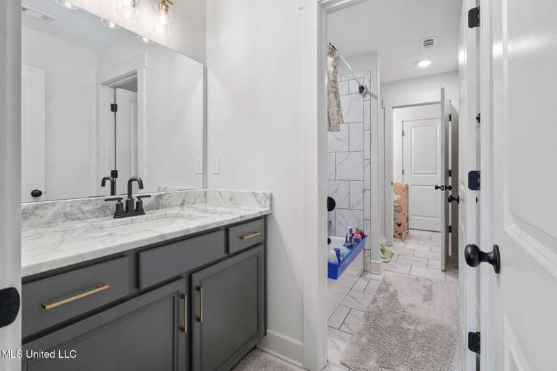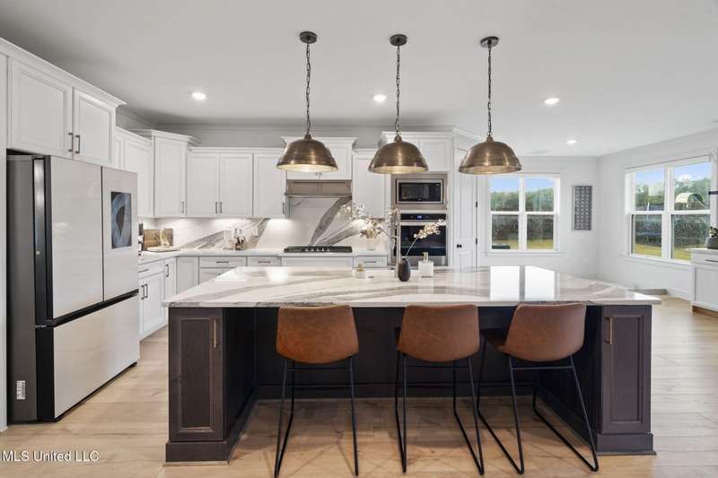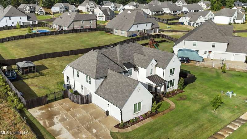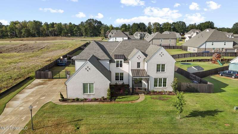 This is a dream home at 13764 River Grove Lane, Olive Branch, MS 38654, nestled in the prestigious River Grove Estates. This luxurious 5-bedroom, 3.5-bathroom single-family residence, built in 2022, boasts 4,236 square feet of luxurious living space on a spacious 0.48-acre lot. It perfectly blends modern elegance with functional design, this home is ideal for families and entertainers alike. This home offers a spacious/modern layout, gourmet chef's kitchen, and elite primary suite. The home office has its own bathroom and beautiful view of the neighborhood. Premium throughout the home include hardwood, tile, double hung vinyl windows, walk-in closets, covered patio, huge fenced yard with separate play area, and state of the art golf simulator with hvac in the 3rd garage bay.