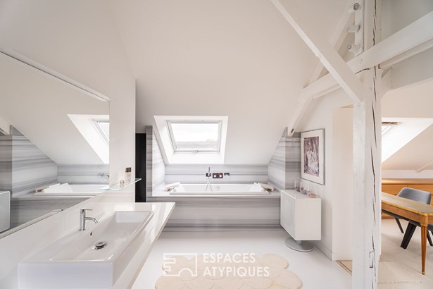 The second floor is dedicated to the sleeping area with two offices and two bedrooms, each with its own en-suite shower room. Finally, the third floor is reserved for a sumptuous master suite, completed by a bathroom incorporating a bathtub, a shower, and a Japanese toilet.